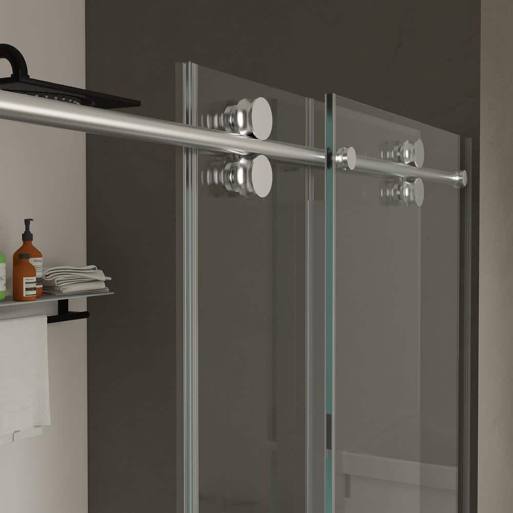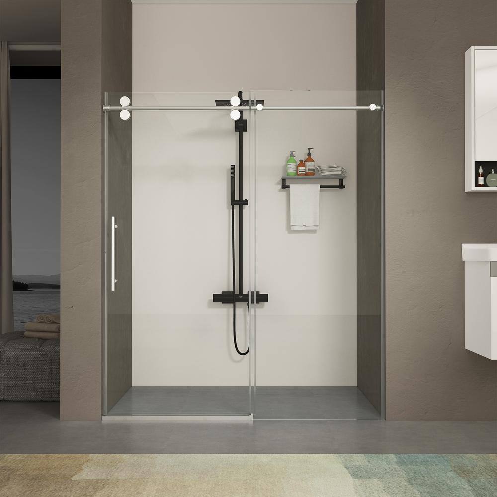 Transform your bathroom with the Staykiwi 60-inch Sliding Frameless Shower Door, featuring clear 3/8-inch tempered glass and a sleek chrome finish. Engineered with a stainless steel frame and handle, this door promises durability and style, ensuring seamless access and a tidy, moisture-free bathroom environment. Ideal for alcove installations, it upgrades any shower space with both function and sleek design.