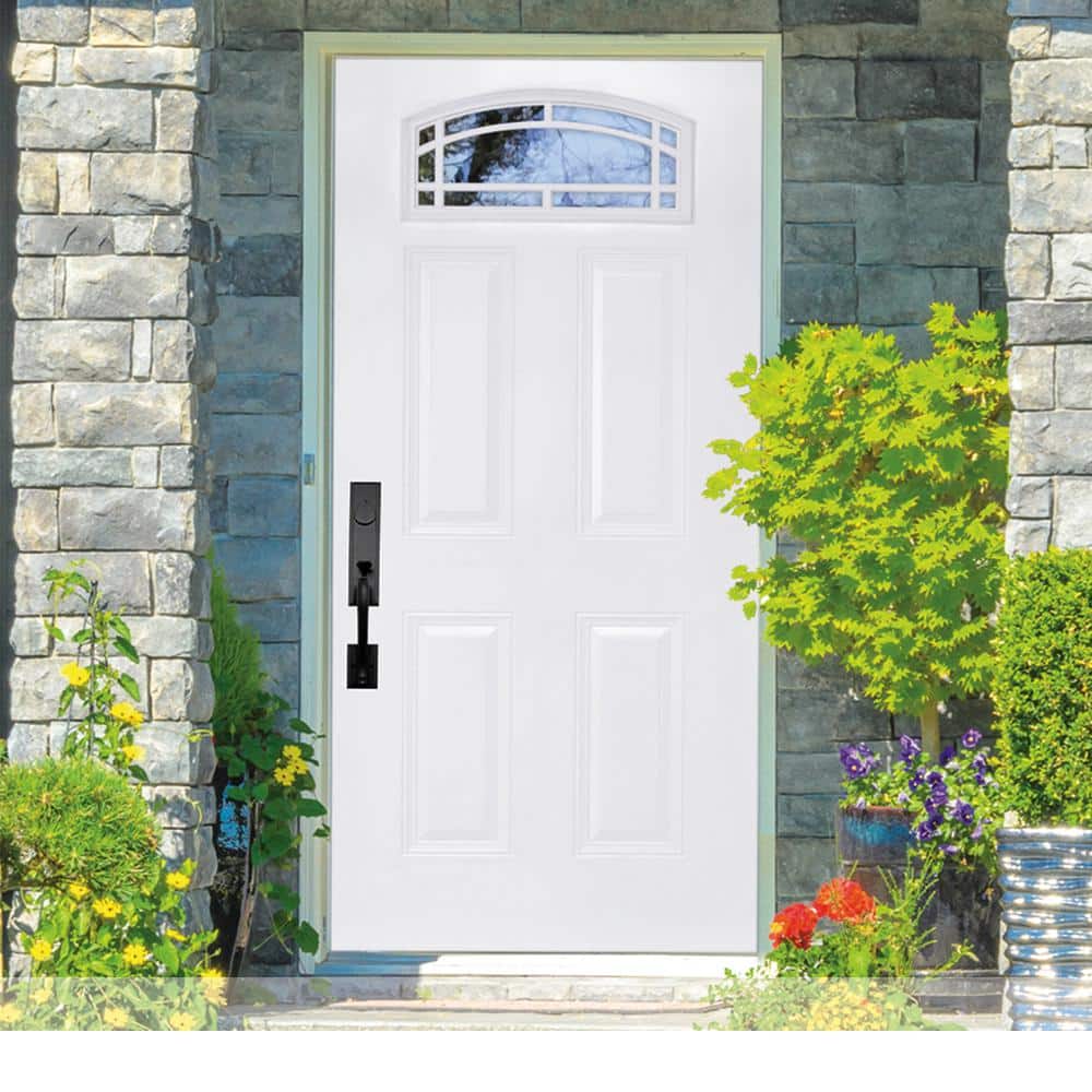 Durable, weather-resistant fiberglass front doors prehung in a fully weather-stripped frame for easy installation. Primed and ready to paint, with multiple glass layouts and panel styles to match your home. ENERGY STAR qualified construction offers efficient performance and long-term reliability.