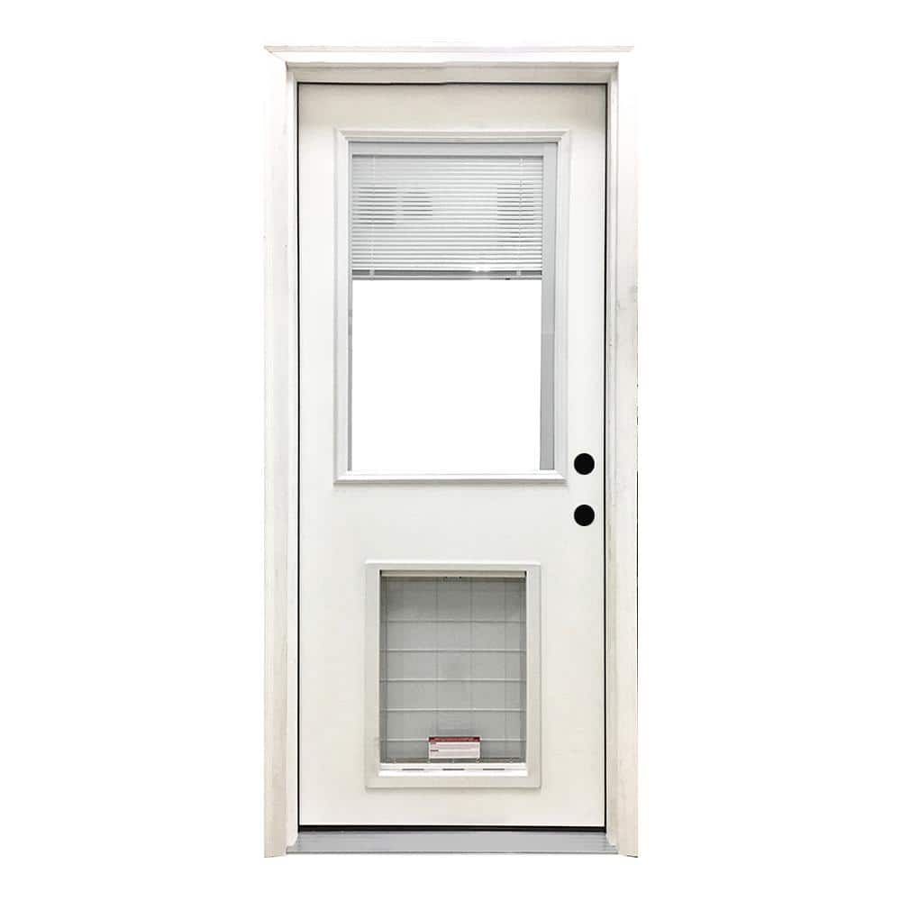 Upgrade your entry with this durable, prehung fiberglass door—complete with built‑in blinds and an XL pet door—order today for easy installation and everyday convenience.