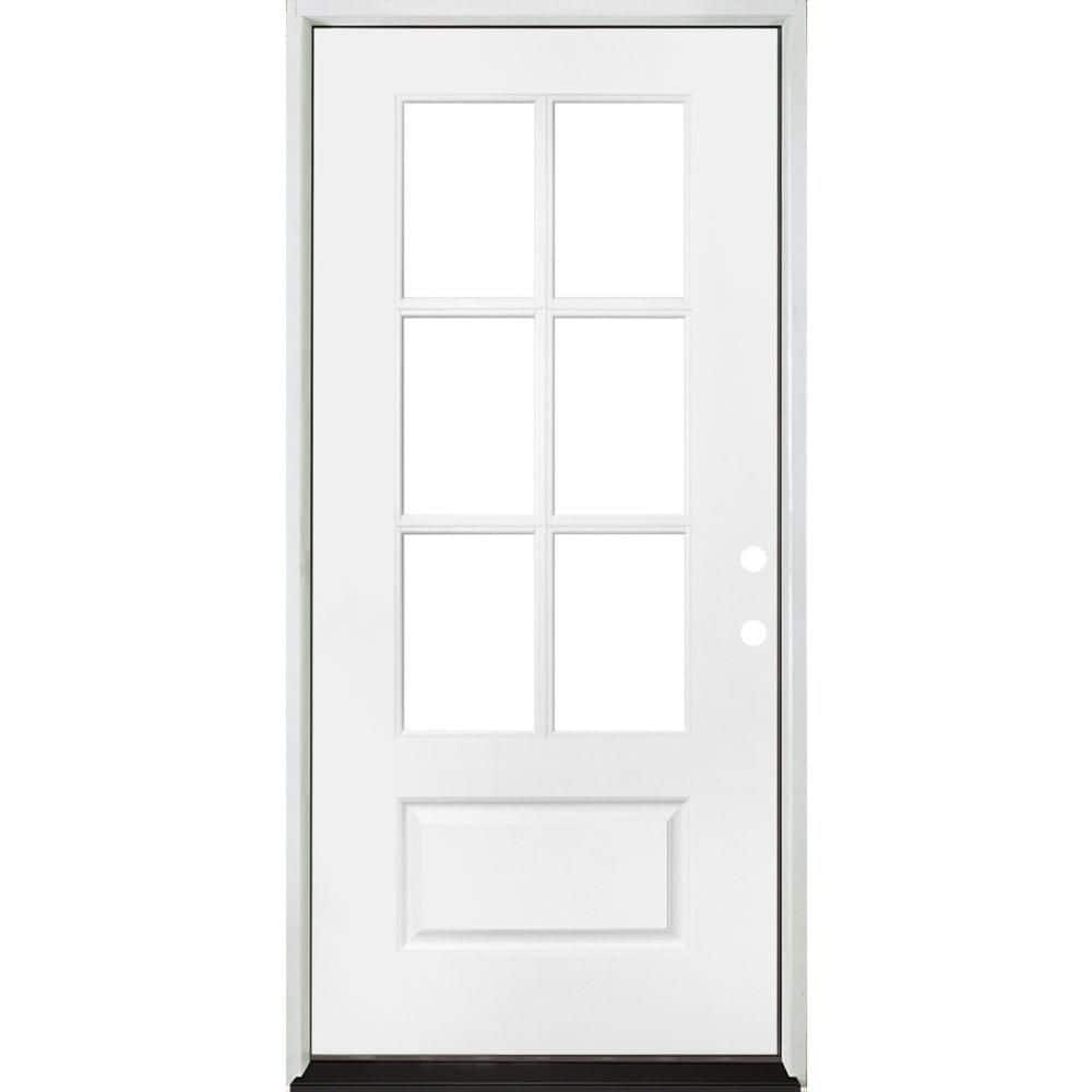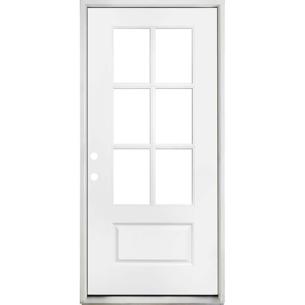 Steves & Sons 36 in. x 80 in. Legacy 6 Lite 3/4 Lite Clear Glass Right-Hand Inswing White Primed Fiberglass Prehung Front Door