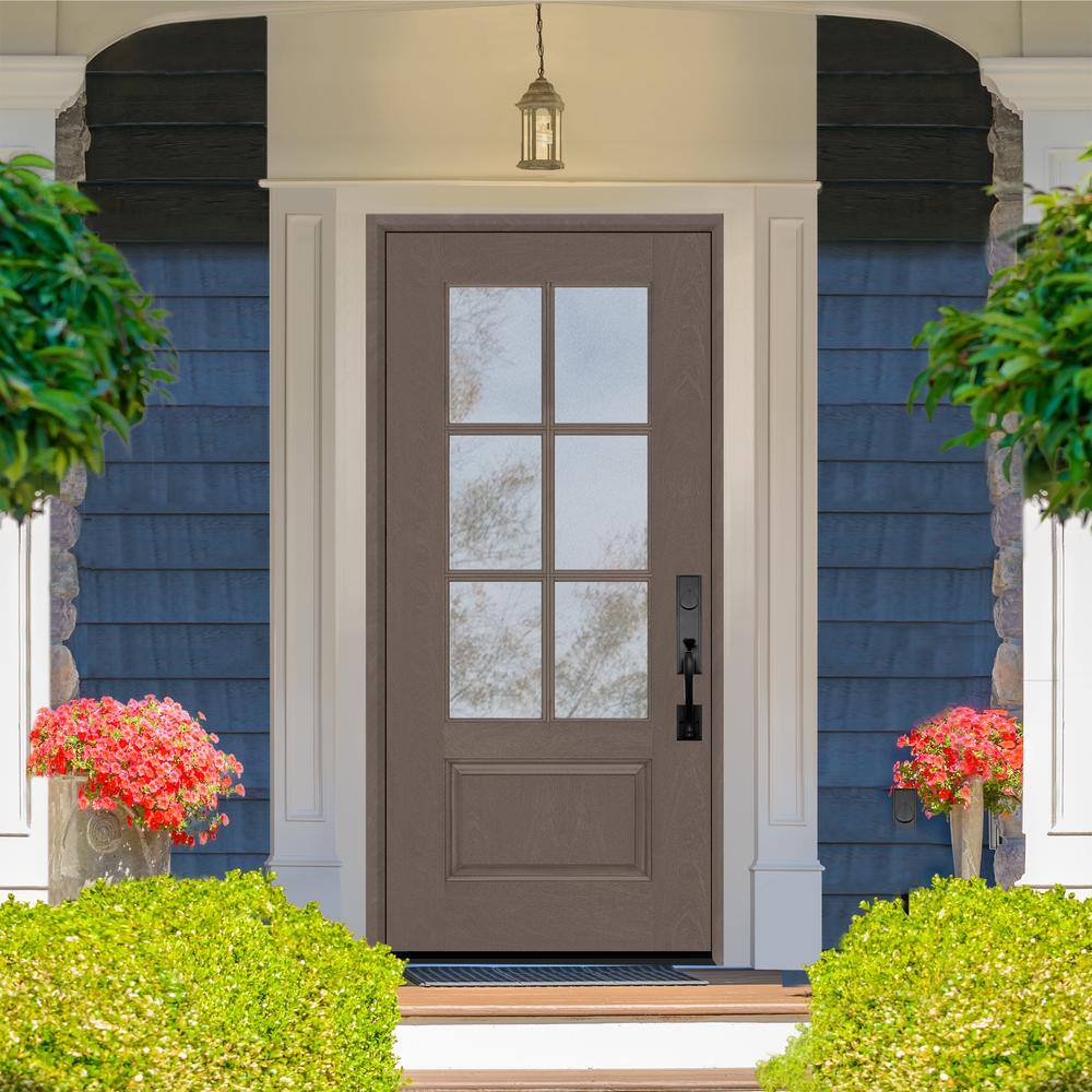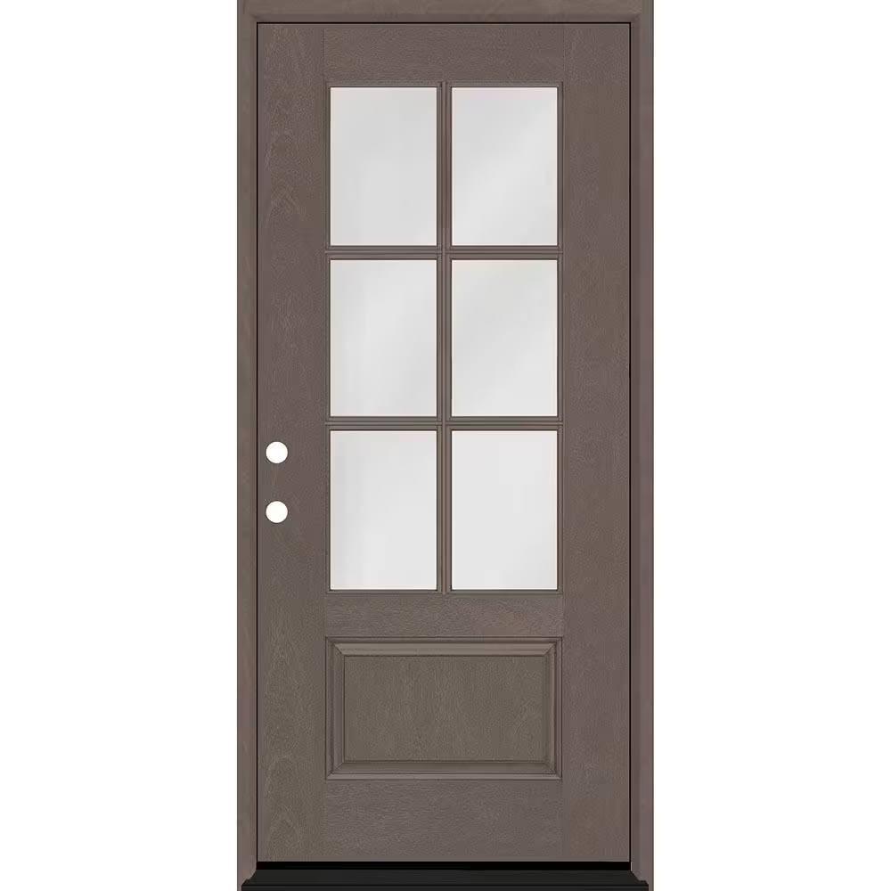 This entry door infuses your facade with tailored elegance—its ashwood-stained mahogany grain and six-lite glass feel refined yet inviting. The direct-glazed, simulated divided lites offer artisanal character without visual clutter. Style it with matte black hardware and lush planters to frame a beautifully balanced threshold. An essential upgrade for luxurious living, pairing classic aesthetics with superior durability.