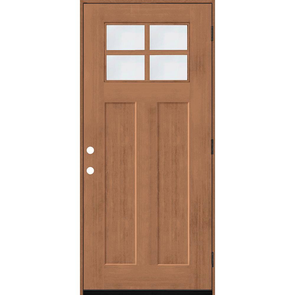 This Regency door ushers in a quiet sophistication—its fir-grain texture and Autumn Wheat stain radiate warmth while the crisp four-lite window brings tailored Craftsman charm. I love the direct-glazed glass that feels seamlessly integrated, lending a refined, custom look. Pair it with matte black hardware and layered outdoor lighting to frame a welcoming, architectural entry. It’s a polished essential that elevates curb appeal and endures beautifully.
