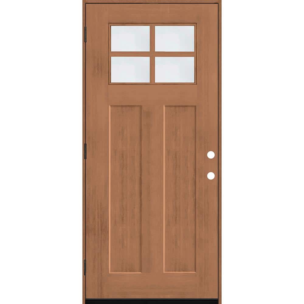 This door bathes your entry in a timeless, craftsman silhouette, its Autumn Wheat stain lending a soft, honeyed warmth. The quartet of clear lites crowns the design with airy symmetry, while the fir-grain texture feels richly authentic. Style it with matte black hardware and layered planters for a modern cottage moment. It’s an elegant, high-performance piece that anchors a luxurious, inviting facade.