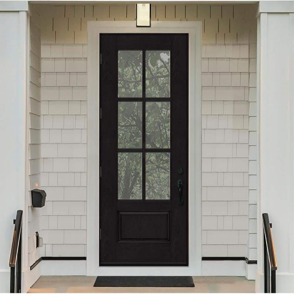 This door dresses the facade in a deep, sophisticated Onyx that feels both modern and enduring. Six clear lites framed by simulated divided bars create a graceful grid, inviting natural light while preserving architectural character. Pair it with matte black hardware and crisp white trim for a chic contrast that flatters cottage to contemporary elevations. It’s an elegant essential that signals quality before you even step inside.