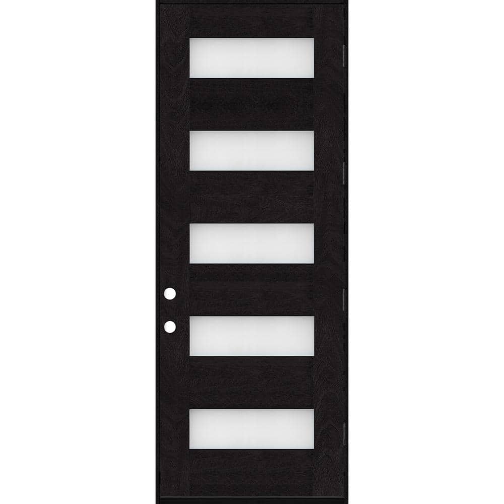 Steves & Sons Regency 36 in. x 96 in. 5-Lite Modern Frosted Glass LH Outswing Onyx-Stained Fiberglass Prehung Front Door