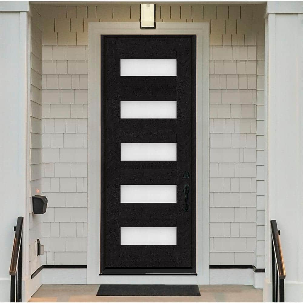 - Modern Design: 5 horizontal frosted lites and rich Onyx stained finish elevate contemporary exteriors.