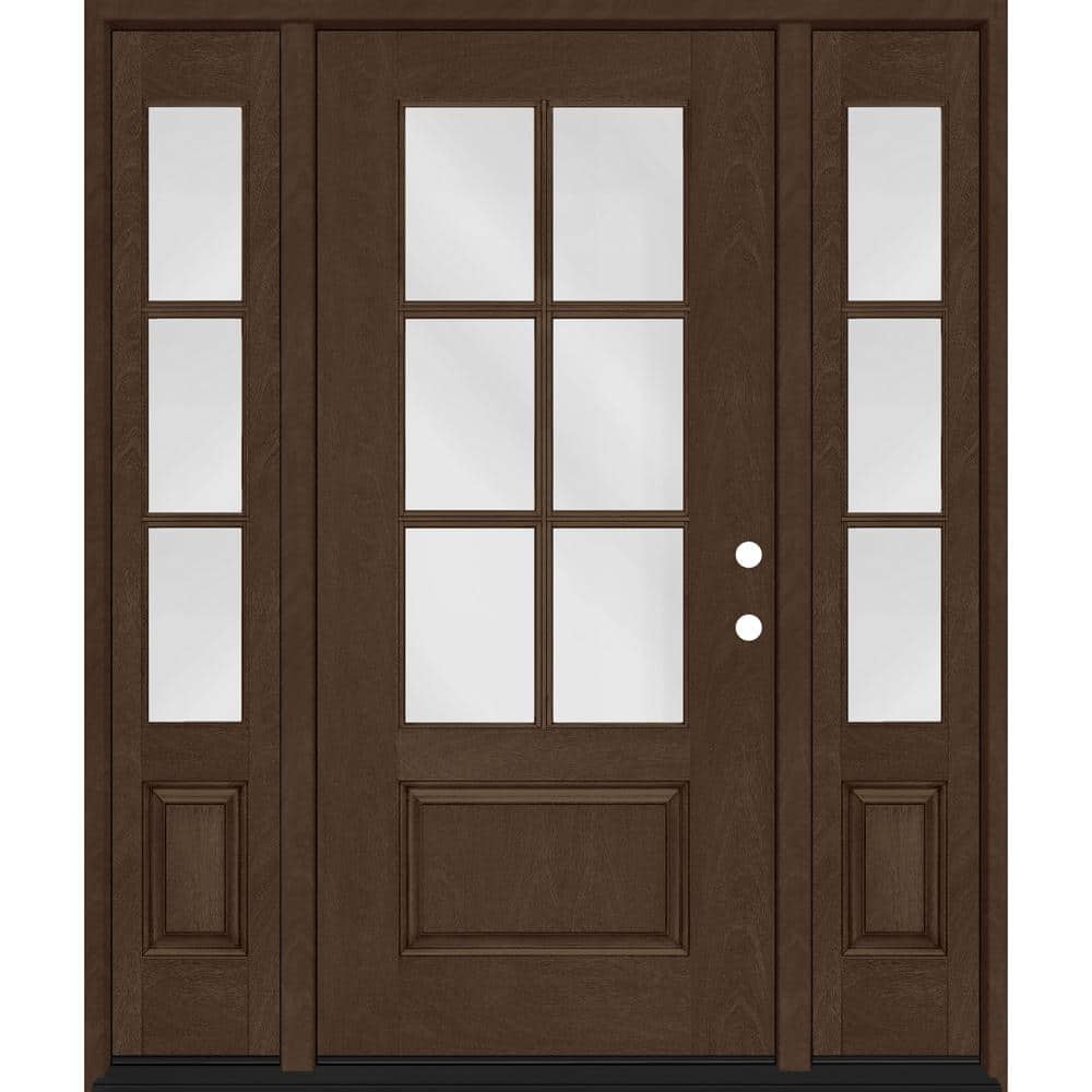 Steves & Sons Regency 64 in. x 80 in. 3/4-6 Lite Clear Glass Left-Hand Hickory Stain Mahogany-Grain Fiberglass Prehung Front Door with Double 12 in. Sidelites
