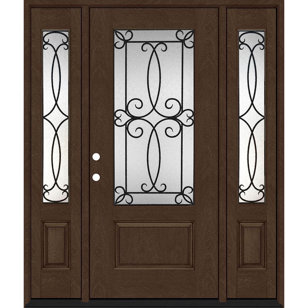 Steves & Sons Regency 64 in. x 80 in. 3/4 Lite Georgian Decorative Glass RHIS Hickory Mahogany Fiberglass Prehung Front Door with 12 in. Sidelites