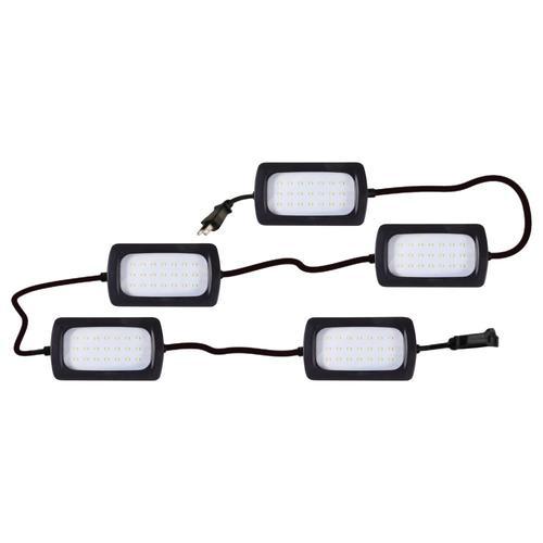 7500 Lumens (1500 per light head) Energy efficient - uses only 85 watts 120 Degree beam angle; 50,000 hour LED life 50 ft 18/2 SJTW cord
