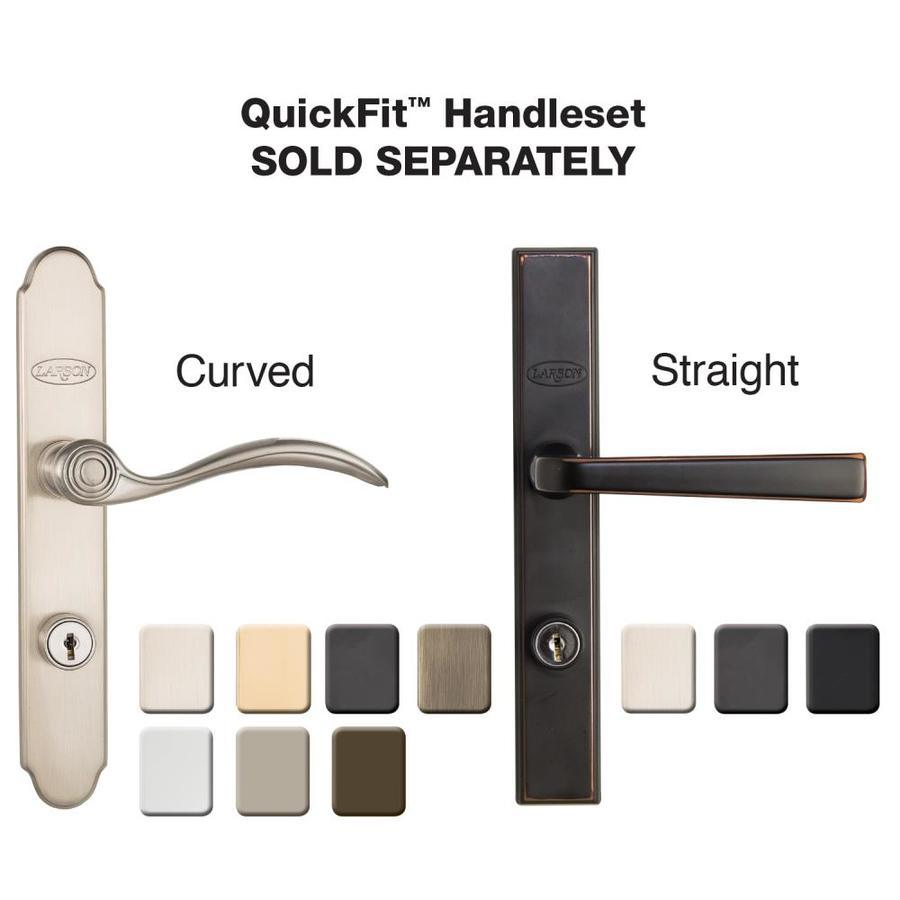 The 4-in-1 retractable screen provides superior privacy, better insect protection, enhanced solar protection and improved strength; screen hides in top cassette when not in use The revolutionary closing system is built into the frame and hidden out of sight at the top of the door providing a clean look inside and out; to release the closer, just pull the door closed Hold the door open by pushing until you hear a click; to release just pull the door close Customize your door with a QuickFit™ handle set featuring modern designs and finishes; keyed deadbolt lock provides enhanced protection (sold separately) Overlapping edge with dual weatherstrip offers the tightest seal for increased energy efficiency Heavy-duty 1-7/8-in thick frame construction stands up to heavy traffic REVERSA-HINGE allows for right or left hinge mounting EasyHang™ installation is faster and easier than traditional methods and offers a no-cut system with mounting rail extenders for an exact fit every time