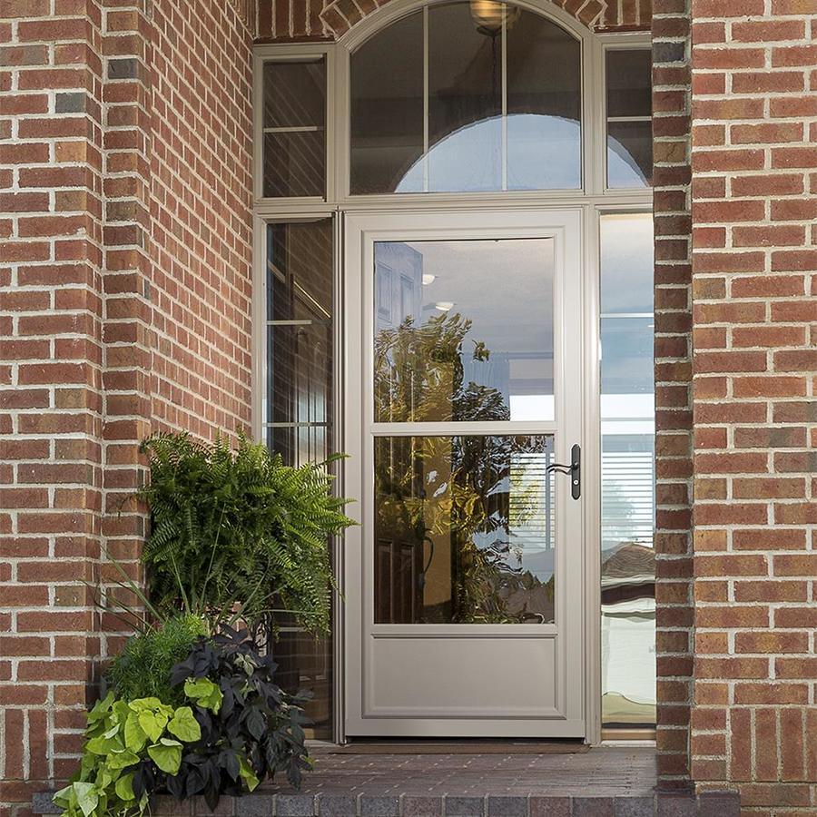 Retractable Screen Away® design converts your storm door to a screen door instantly by discreetly hiding the screen in a cassette at the top of the door Closer features a Hold-Open button that holds the storm door open with a tap of your toe QuickFit™ handle sets let you choose from seven handle finishes; sold separately The balanced window system and ergonomically designed handle glides the screen up and down for unlimited ventilation control Overlapping edge offers the tightest seal for increased energy efficiency Dual heavy-duty weather stripping seals out harsh weather conditions Keyed deadbolt lock with modern interior and exterior lever designs offer enhanced security protection and elegance Heavy-duty 1-7/8-in thick frame construction stands up to heavy traffic REVERSA-HINGE allows for right or left hinge mounting