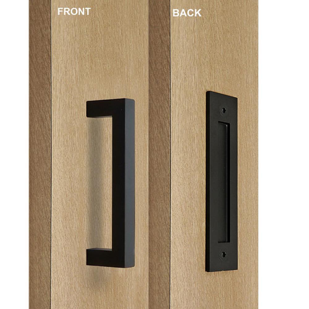 Rectangular 8 in. Matte Black Stainless Steel Ladder Pull and Flush Sliding Barn Door Handleset