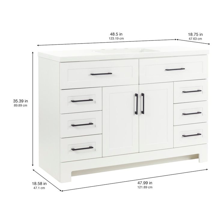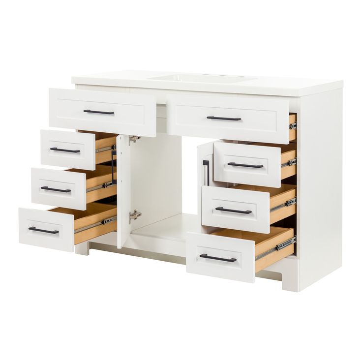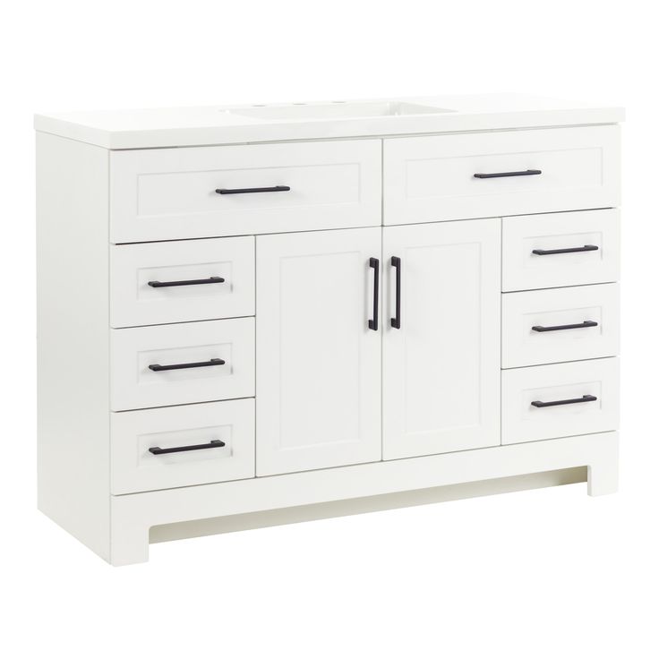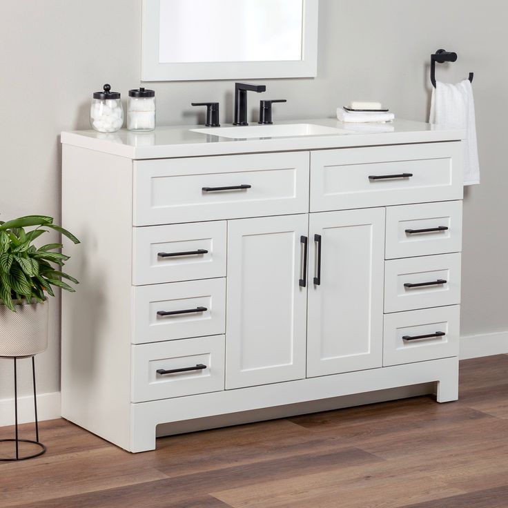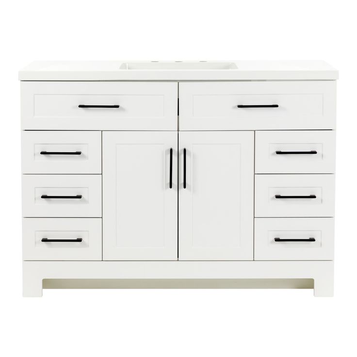 This 48-inch single sink bathroom vanity from Style Selections is designed with a white cultured marble top. Its sleek design and durable material provide a modern and functional addition to any bathroom. With its spacious cabinet and elegant finish, it offers both style and storage for your daily routine.