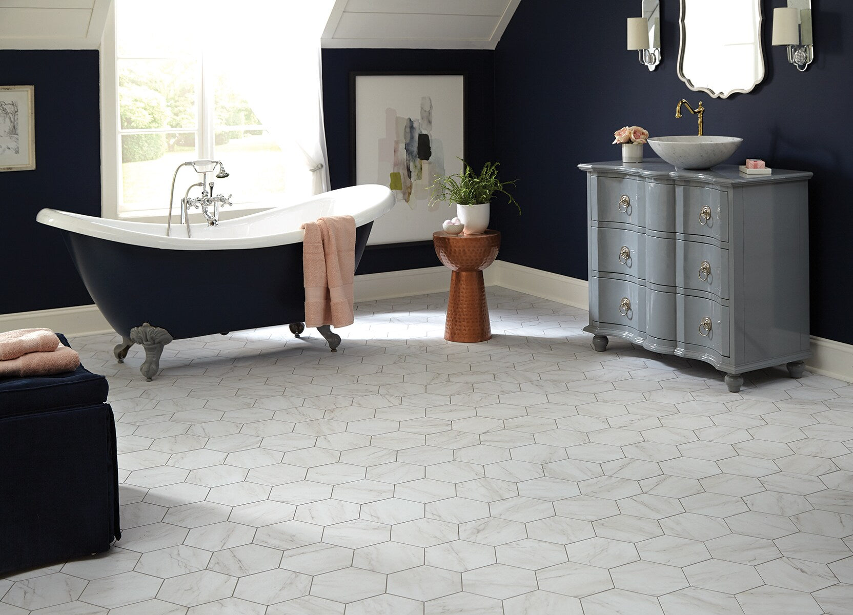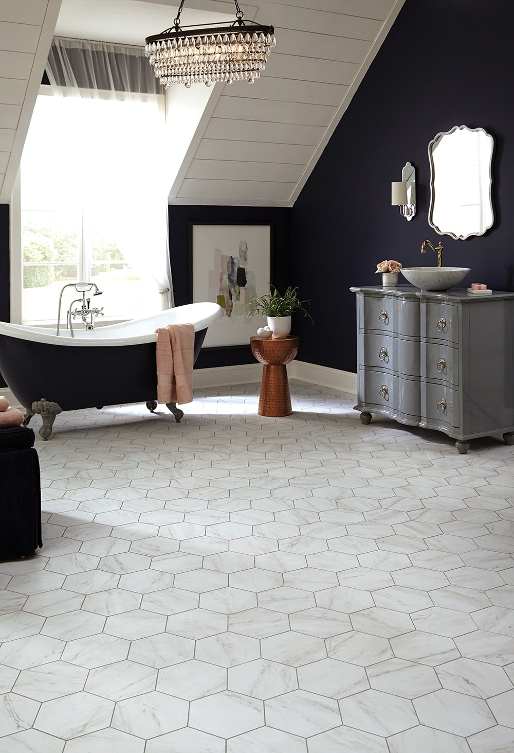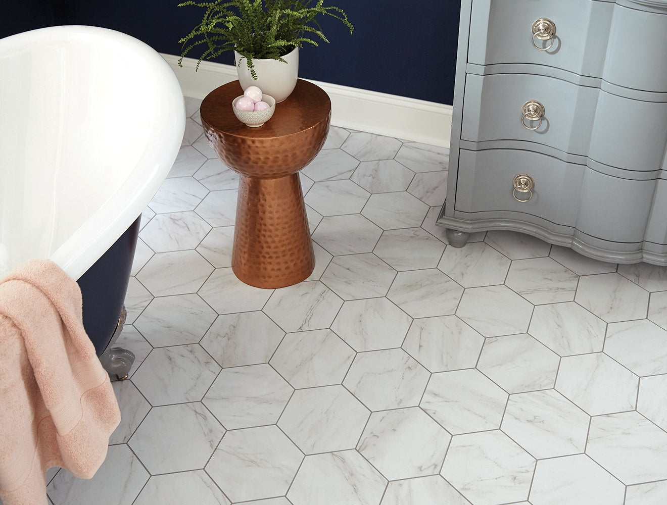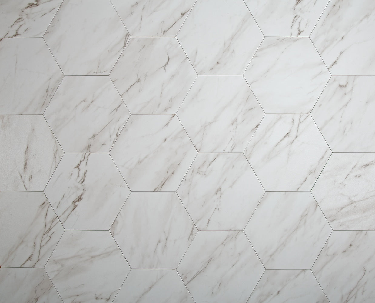 Style Selections Grecian Marble 7-3/4-in x 9-in Groutable Water Resistant Peel and Stick Vinyl Tile Flooring (0.3699-sq ft)