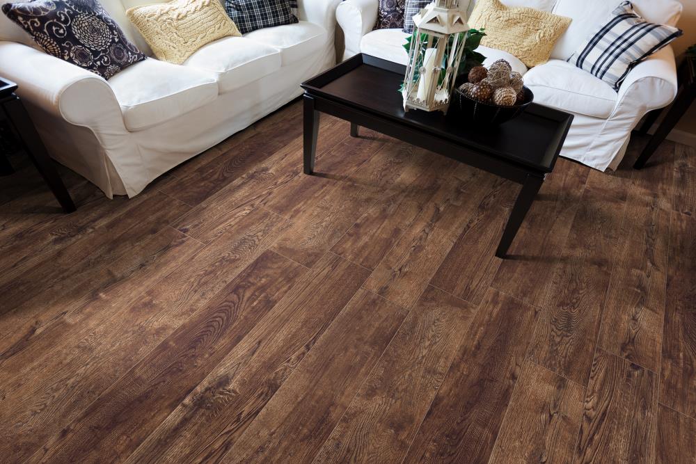 - Large-Format Plank: Actual size 47.4-in L x 7.72-in W x 8mm thick; 2.54-sq ft per piece