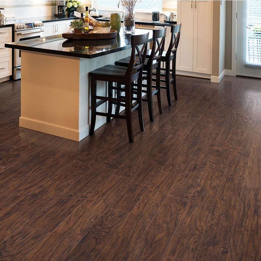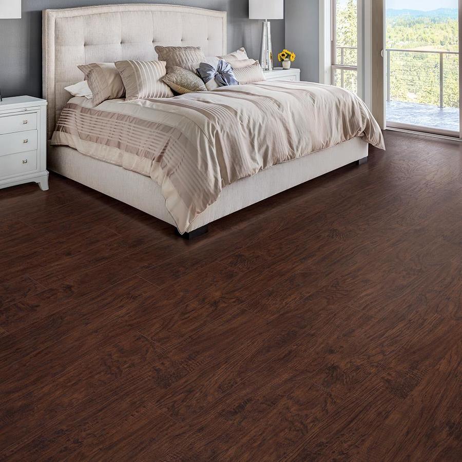 These clean, contemporary planks feature a hickory visual with natural looking knots and graining The rich chocolate and bronze tones in this floor complement either light neutrals or bolder, darker wall colors Can also be installed on walls to add warmth to rooms and style to spaces 30 Year Limited Residential Warranty with AC3 wear layer that provides tough scratch and scuff resistance 8mm thickness for greater stability and sound control Easy to install locking system requires no glue and makes installing a laminate floor an easy DIY project - coordinated moldings available Underlayment required, recommended PERGO Gold™ for thermal comfort and sound insulation plus it has a built in moisture barrier FloorScore® certified and TSCA Title VI compliant Manufactured in the USA with content from the America’s and Europe