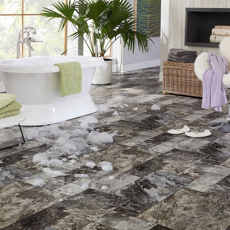 This sheet vinyl flooring presents a textured stone appearance that harmonizes well with diverse wall colors. Its waterproof construction renders it ideal for moisture-prone spaces such as kitchens, baths, laundry rooms, and mudrooms, making it suitable for installation in any room, including basements. With a 75-gauge thickness, it offers resilience against dents while providing comfortable underfoot support. Available in cut-to-length vinyl rolls of 12-foot widths, its fiberglass composition ensures durability in a bustling household. Its easy DIY installation options, including loose lay or glue down applications, simplify the installation process. Additionally, it is FloorScore® Certified, meeting or surpassing industry standards for environmental safety. Backed by a 25-year Limited Residential Warranty, it offers assurance of long-lasting performance and quality.