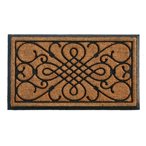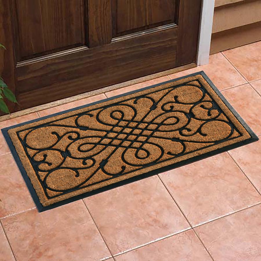 Classic Victorian gate design inlaid on a natural coir surface Coir fiber with its superior scraping and moisture absorption is the natural choice for doormats Rubber backing reduces shedding of fibers and resists skidding Woven coir with rubber backing and edging provides great durability