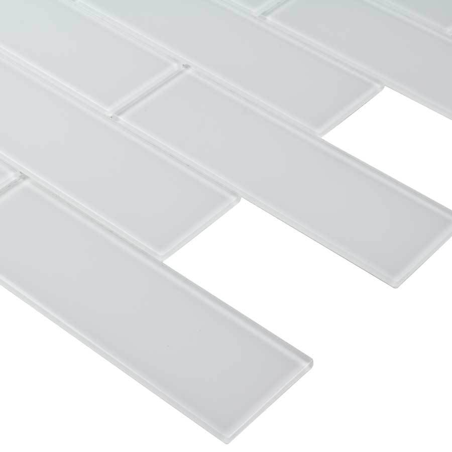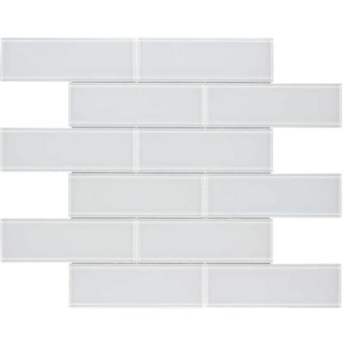 Spotlight Subway mosaic glass wall tile refreshes your bath or kitchen with a clean, modern style Glossy finish with smooth white surface reflects light and brightens your space Rectangular subway style features straight edges for a clean look that will enhance any wall Impervious tile doesn’t absorb water, so it’s safe for high-moisture indoor settings 11.75-in L x 11.75-in W x 4mm thick tile covers 0.96-sq ft per piece Sold individually, so it’s easier to purchase the right amount for your project Ideal for use with bathroom and shower walls, kitchen backsplashes or as an accent tile