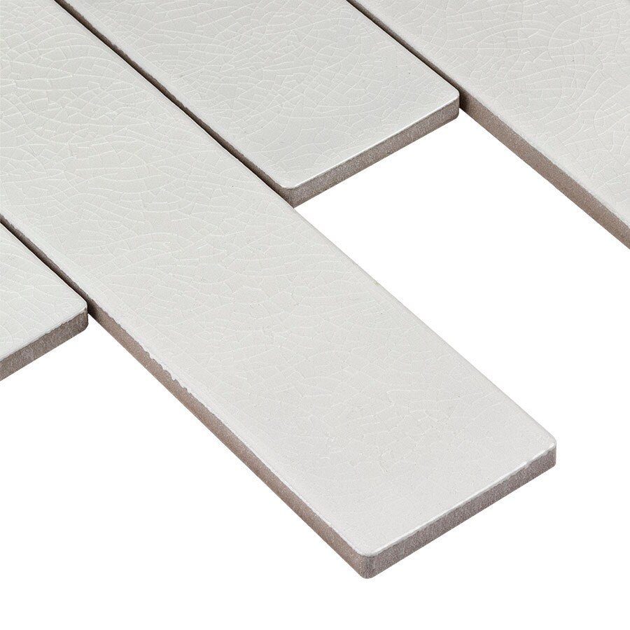 A sleek, crackle-glaze subway mosaic designed for refined backsplashes and feature walls. The 12-in x 15-in sheet delivers a smooth, glossy ceramic finish in Harmony White with subtle variation for a clean, elegant look.