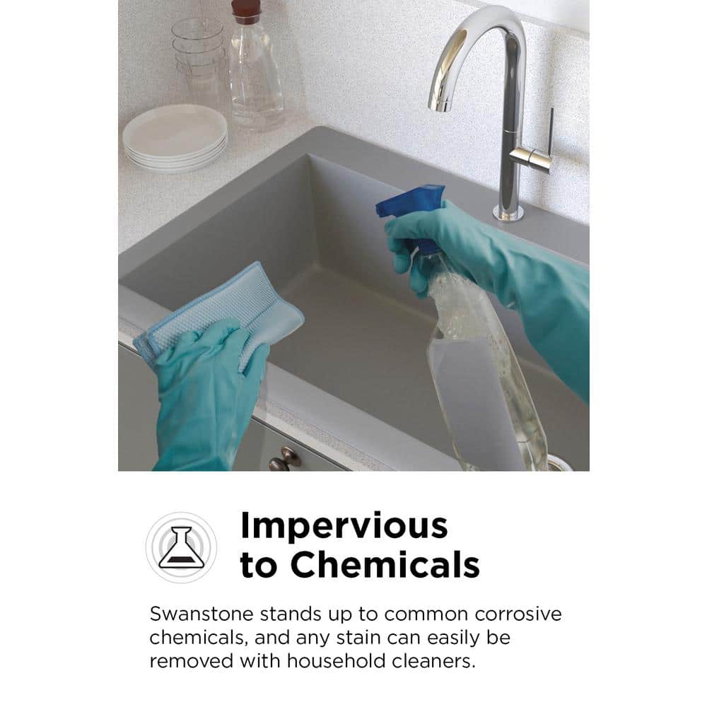 • Solid Surface Construction: Non-porous Swanstone material is durable, impact-resistant, and easy to clean