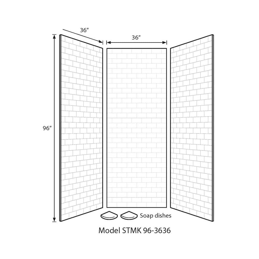 36x36x96 Subway Tile Solid Surface Alcove Shower Surround, 3-Piece