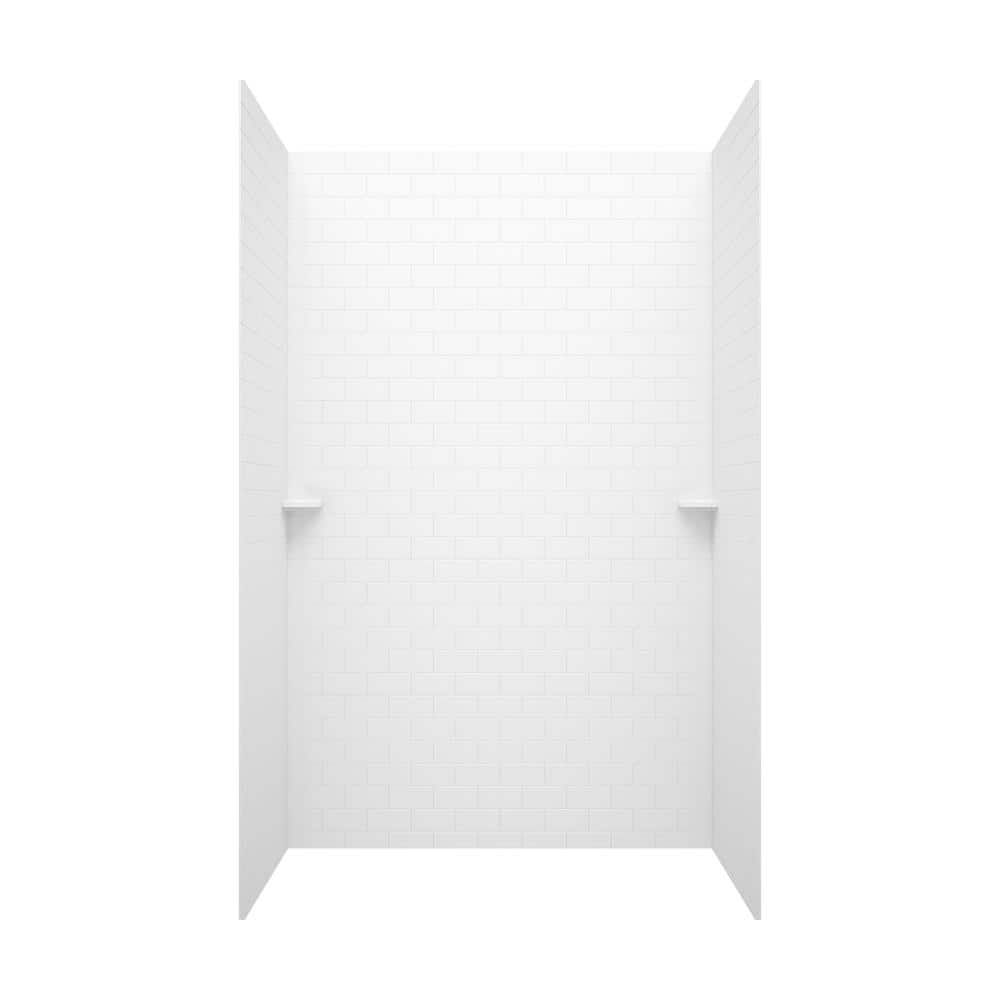 Swan 36 in. x 36 in. x 96 in. 3-Piece Solid Surface Subway Tile Easy Up Adhesive Alcove Shower Surround in White