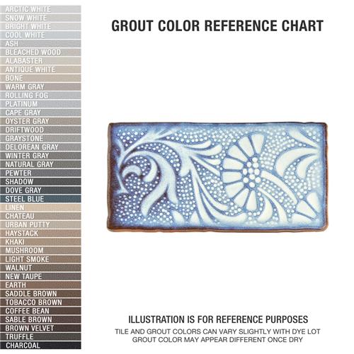 A: Bright white grout is suggested to complement the light blue reactive glaze.