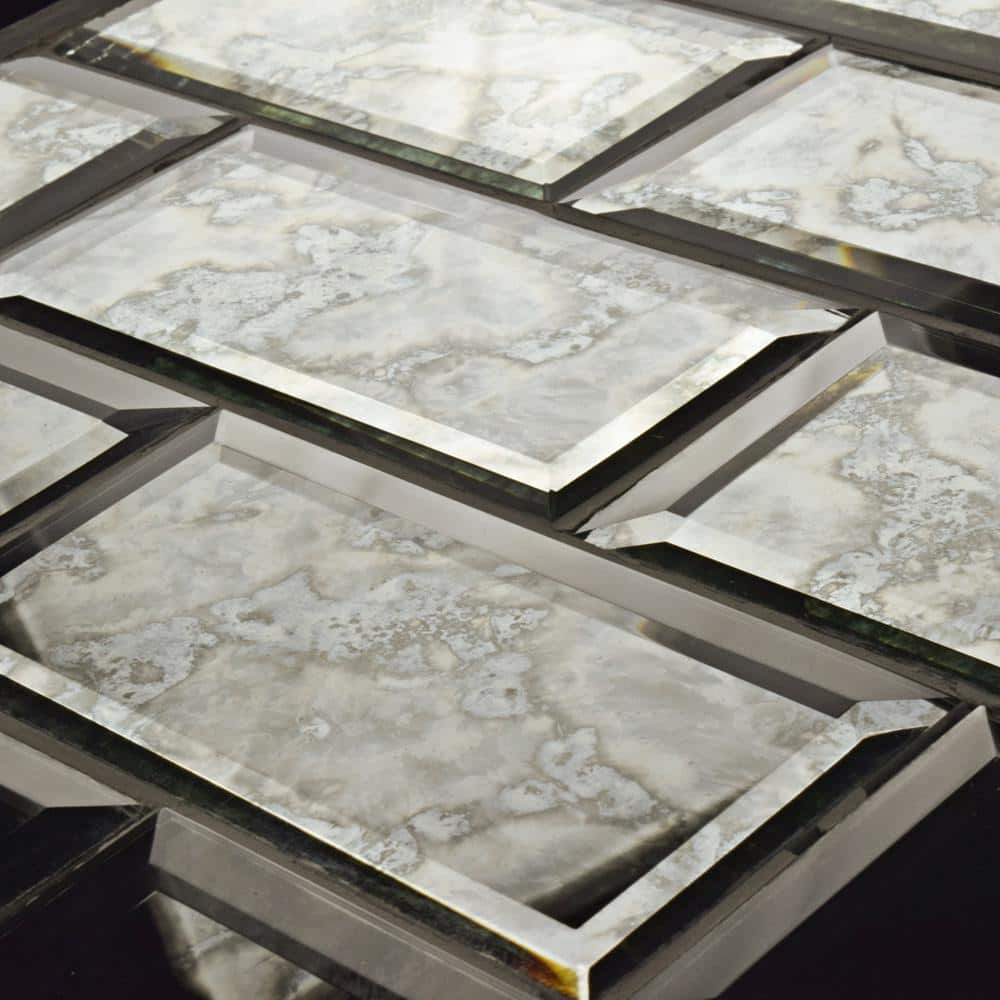 Lustre Beveled Antique Mirror Glass Subway Wall Tile, 3x6