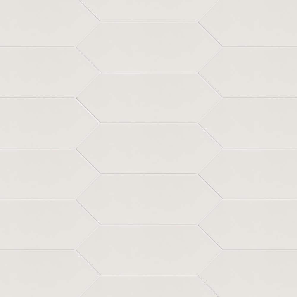 Elongated hexagon porcelain tile in a light grey tone, crafted for floors and walls. Impervious, frost-resistant construction supports indoor or outdoor installations for backsplashes, bathrooms, kitchens, and patios.