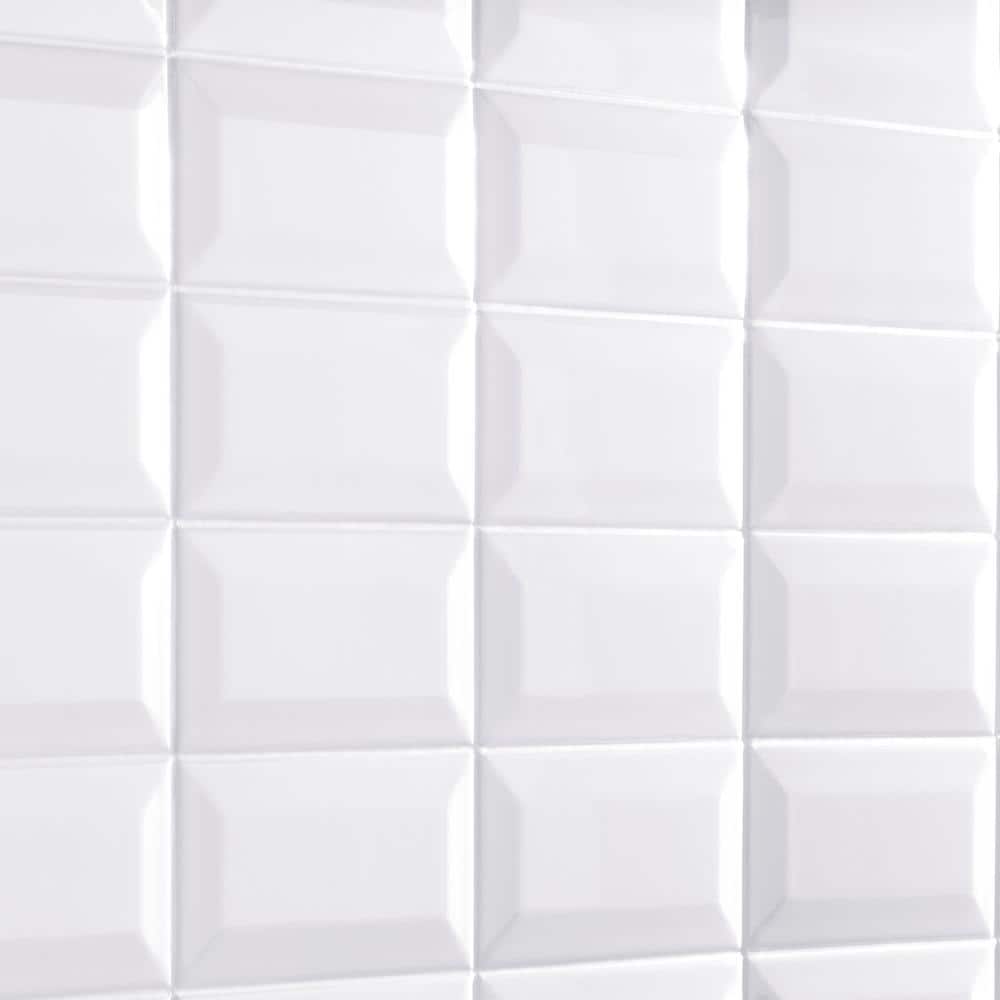 Timeless bright white beveled ceramic subway tiles ideal for backsplashes and shower walls. Glossy, pressed-edge tiles install with mortar and create a clean, textured look with built-in lugs for consistent grout joints.
