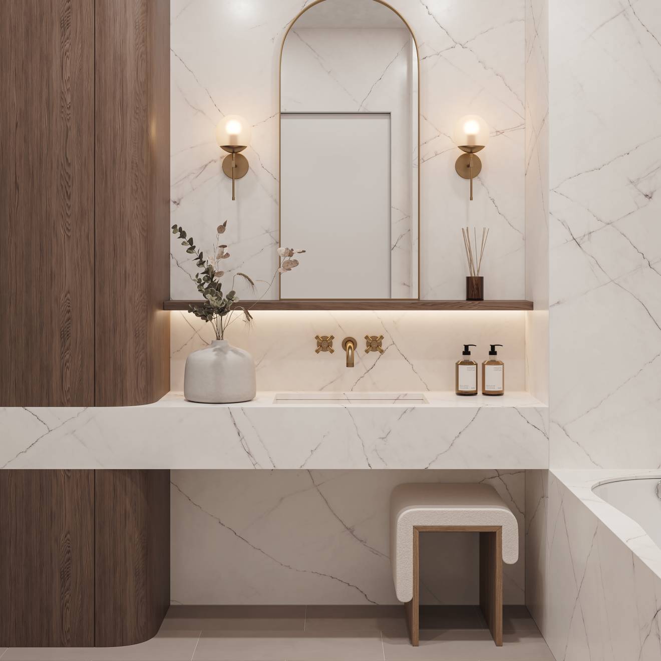 Sahara’s taupe matte porcelain invites a soothing, grounded elegance into any room. Its velvety surface and sun-washed hue layer beautifully with warm woods and brushed brass for an effortless, curated look. Try running the 12x24 format in a sleek stacked pattern to elongate sightlines and create architectural simplicity. This tile is a quiet luxury essential—timeless, versatile, and impeccably refined.
