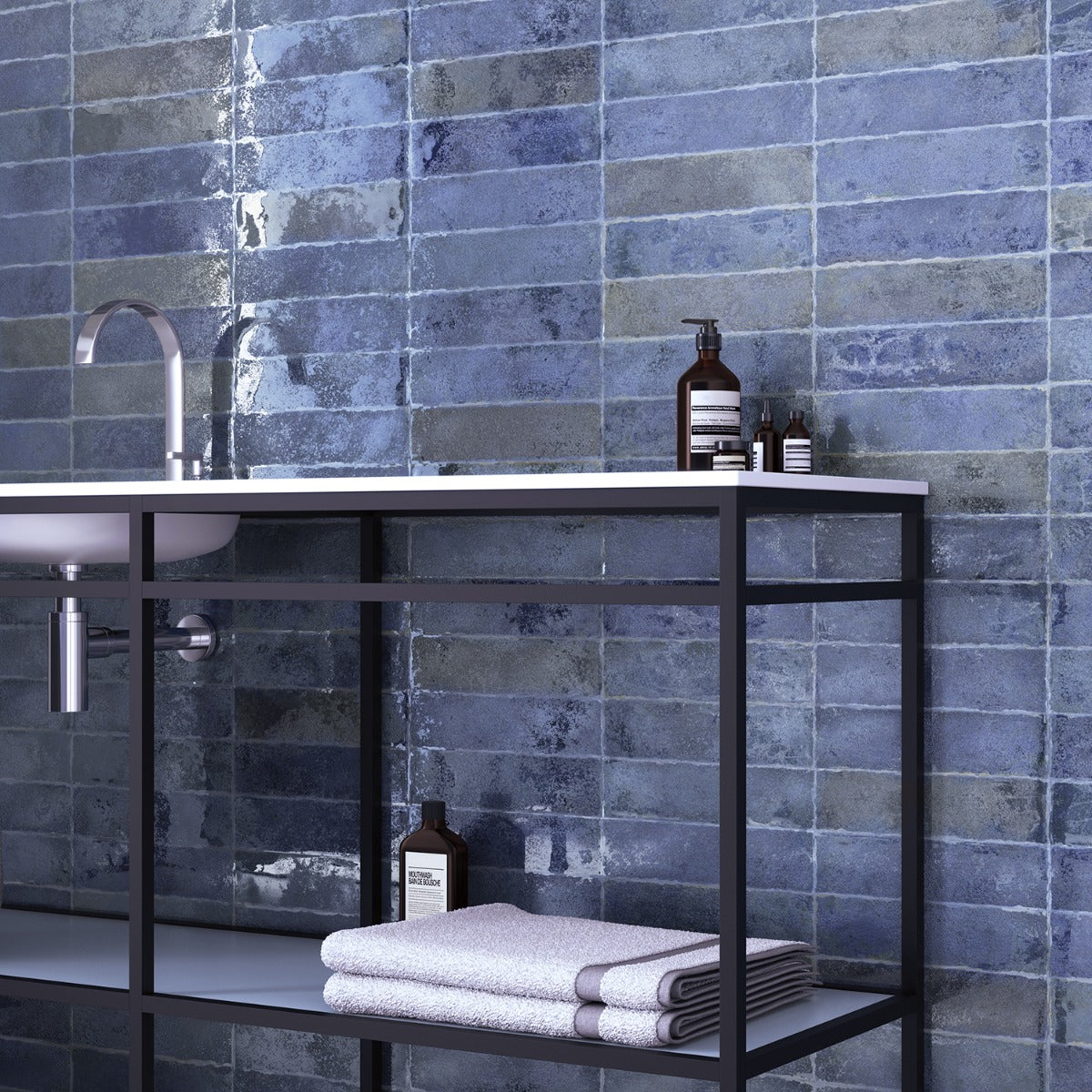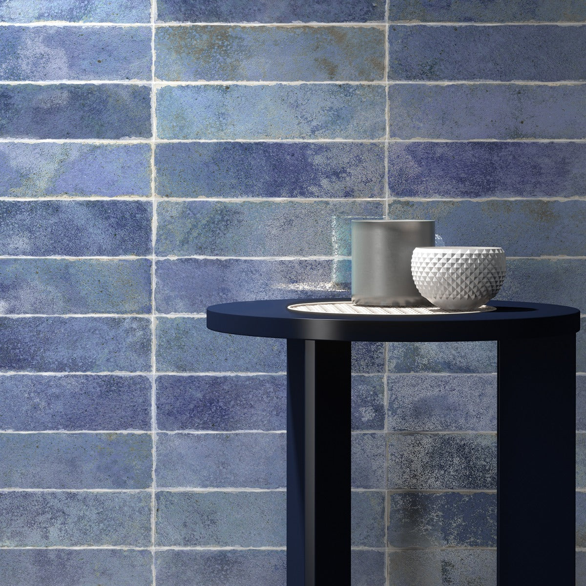 Transform your space with the Kalay Blue Glossy Ceramic Subway Tile—order now to bring a touch of modern rustic elegance to your home.