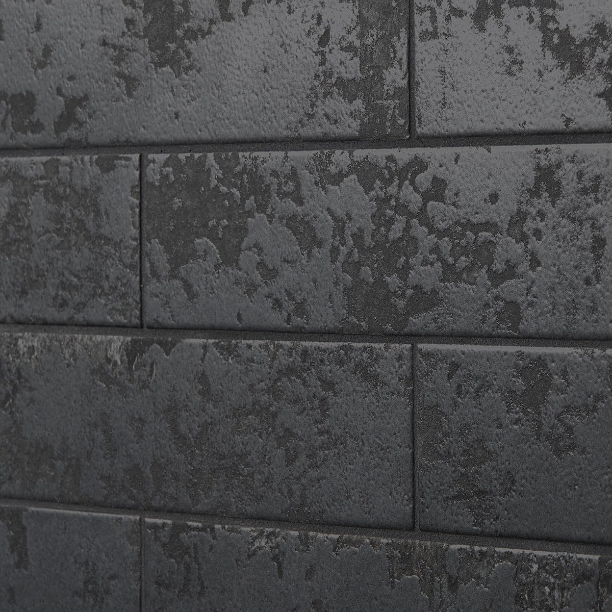 The Portrait Black Matte Subway Tile offers a sleek and modern design with its oxidized concrete look and matte finish. Perfect for both indoor and outdoor applications, this Italian-made porcelain tile is durable and versatile.