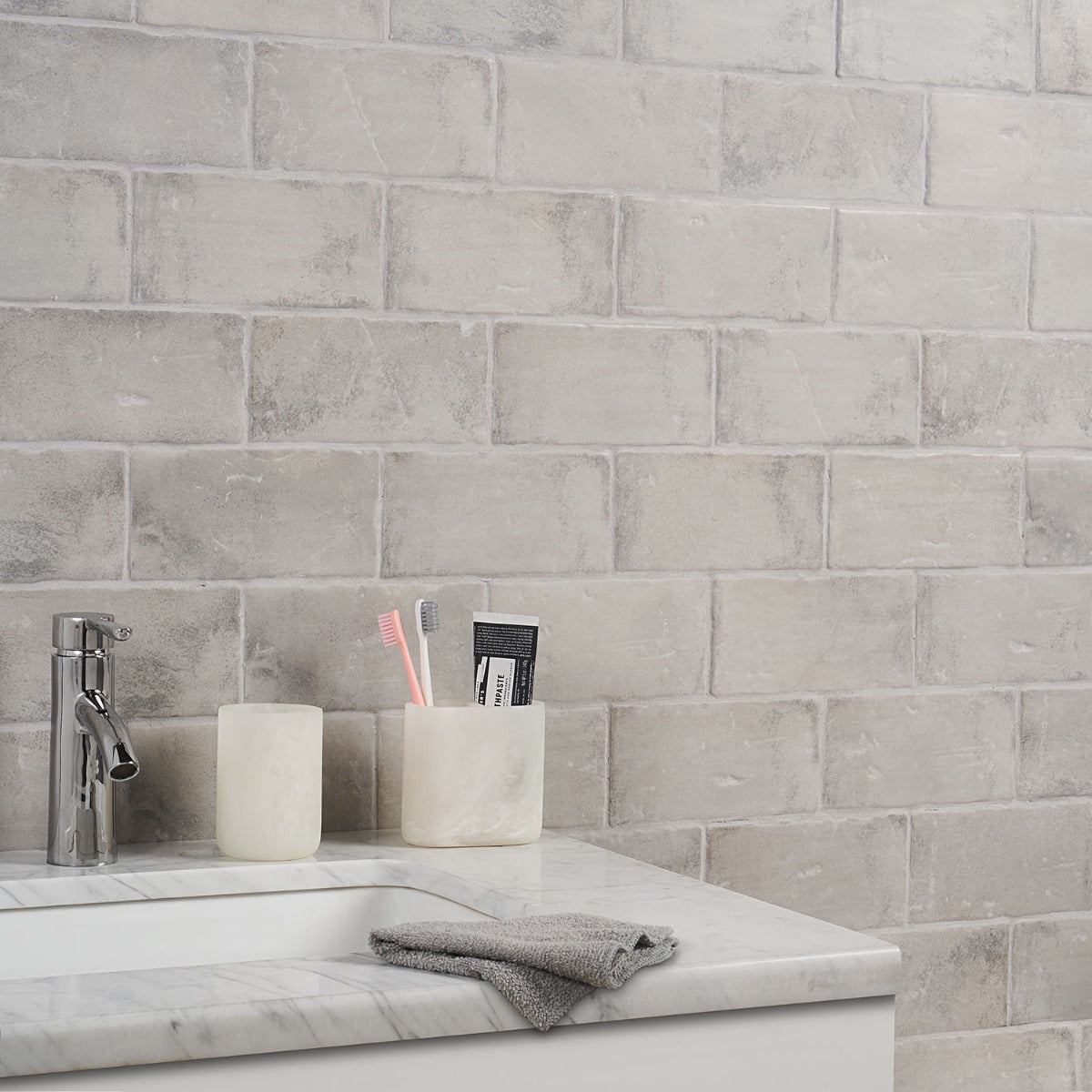 The Parma Brick Dove Gray Tile offers a rustic terracotta look with a matte finish, perfect for creating artisanal and traditional wall designs. Its durable ceramic material and handcrafted appearance make it ideal for backsplashes, bathrooms, and kitchens.