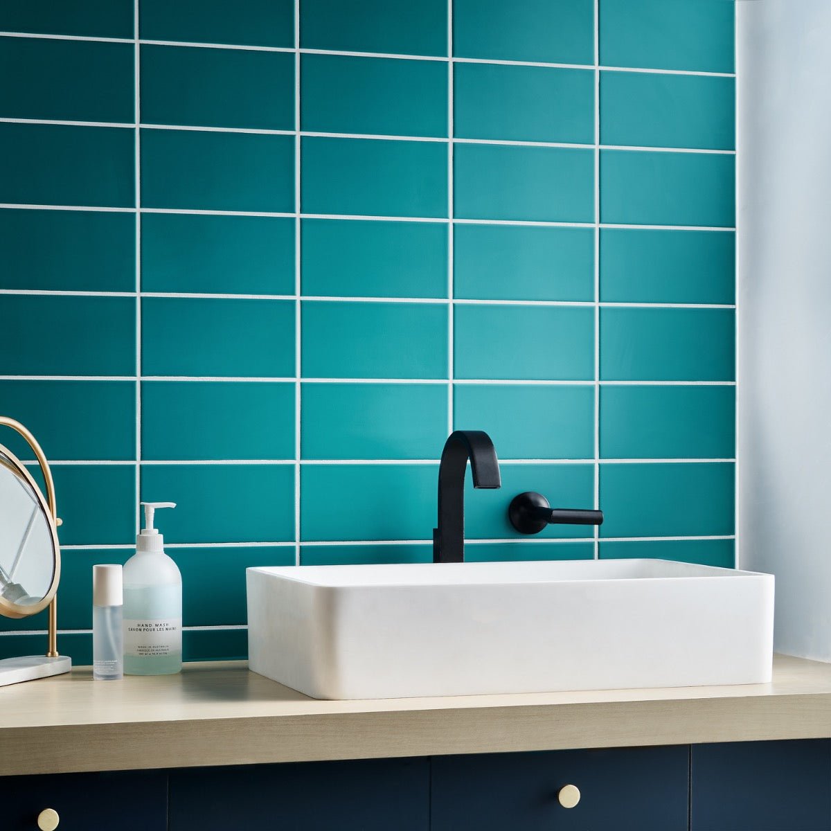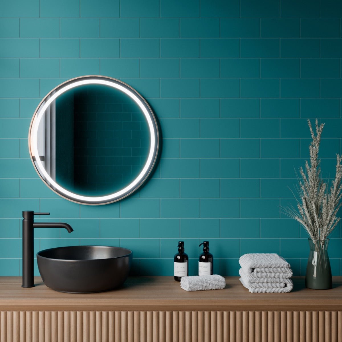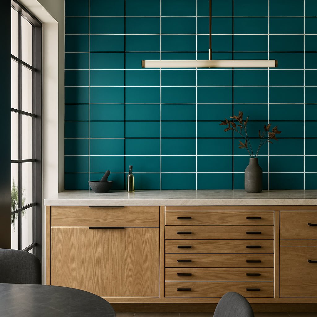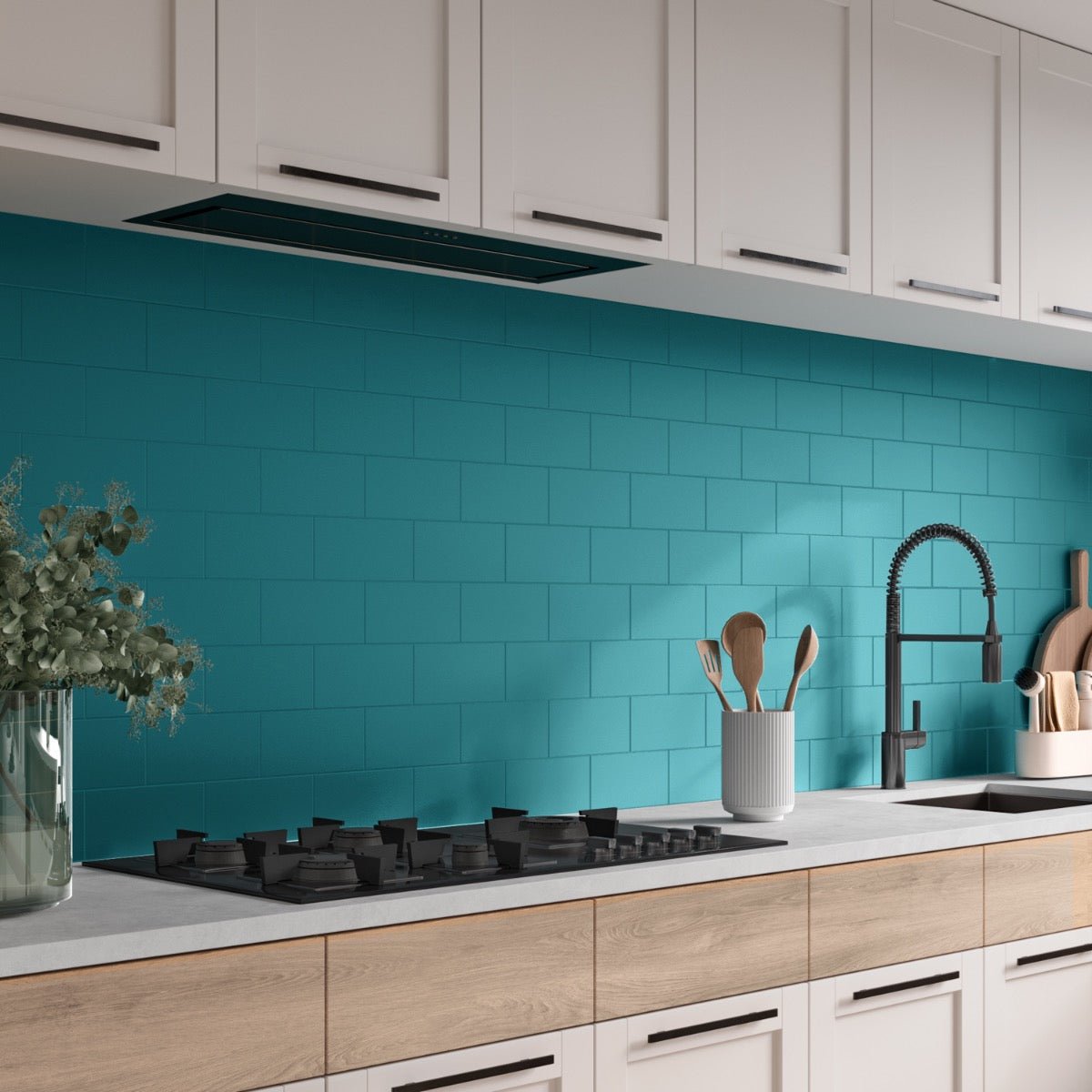 Transform your space with the vibrant and versatile Maddox Teal Blue Subway Tile today!