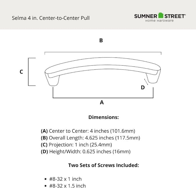 The Selma 4-inch Oil-Rubbed Bronze Arch Drawer Pull by Sumner Street Home Hardware offers a perfect blend of classic design and practicality. Crafted from solid zinc, this drawer pull is hand-polished to bring out the exquisite texture of its aged metal finish. Ideal for updating kitchen cabinets or bathroom vanities with a touch of refined sophistication.