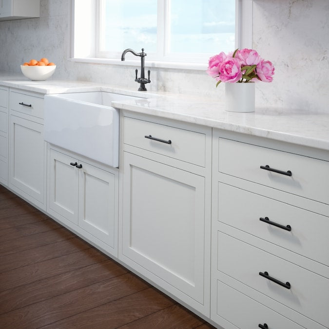 The Flynn Drawer Pull by Sumner Street Home Hardware unites modern design with unparalleled durability. Handcrafted from plated zinc and polished to perfection, this matte black pull offers a sophisticated touch to your cabinetry, complete with a full lifetime warranty for peace of mind.