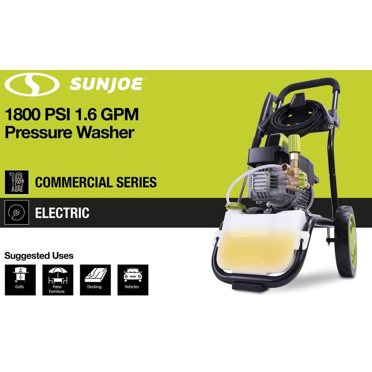 Featuring rugged, pro-quality equipment designed for everyday use at the worksite, restaurant, retail store, repair shop and more, Sun Joe’s PRO Series Commercial-Grade Pressure Washer SPX9008-PRO powers through your toughest cleaning tasks and home-improvement projects. Our PRO Series pressure washers come with the most-requested top-of-the-line, pro-performance upgrades and features for your most demanding jobs — like sturdy all-terrain wheels, brushless induction motor, on-board hose holder, steel-frame roll-cage construction, and durable 25-foot steel-reinforced high-pressure hose. Equipped with the high-performance 13.5-amp brushless induction motor, SPX9008-PRO blasts up to 1800 PSI and 1.6 GPM to take on tough grease and oil stains, mildew, caked on mud, tar, rust and other stubborn dirt and deposits. Dial-in the perfect pressure with the adjustable pressure valve, designed to give you complete control over your cleaning projects! Select a lower setting for a quick clean; or crank it up to demolish stubborn oil stains, dissolve grease deposits or eliminate grime from grout. And with the 5 onboard Quick-Connect spray tips, you can select your spray the easy way. Select from 0º, 15º, 25º, 40º, and soap to tackle light, medium and heavy-duty dirt and debris. Swap nozzles to quickly go from precise 0° pencil point jet to 40° fan spray or apply detergent directly from the onboard 1-gal tank to the cleaning surface with the soap nozzle for additional cleaning power.