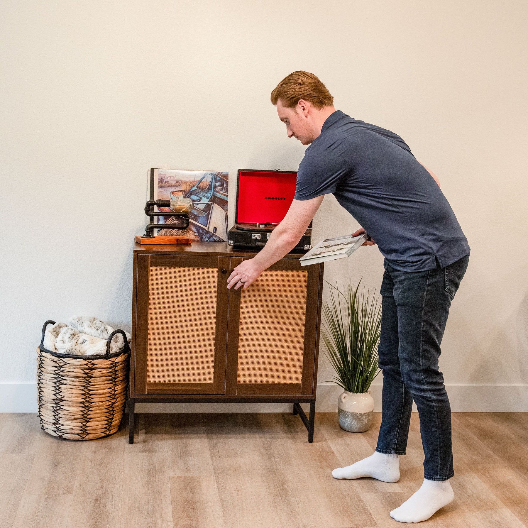The Sunnydaze Modern Boho Office Cabinet brings a harmonious mix of texture and design to any room it graces. With its striking rattan doors against a classic brown finish, this cabinet promises to become a focal point in your decor. Imagine it in a sunlit corner, complemented by lush greenery and macramé wall art. This piece doesn't just offer storage; it invites serenity and warmth into your living space, making it essential for those who seek to elevate their home's ambiance through thoughtful design.