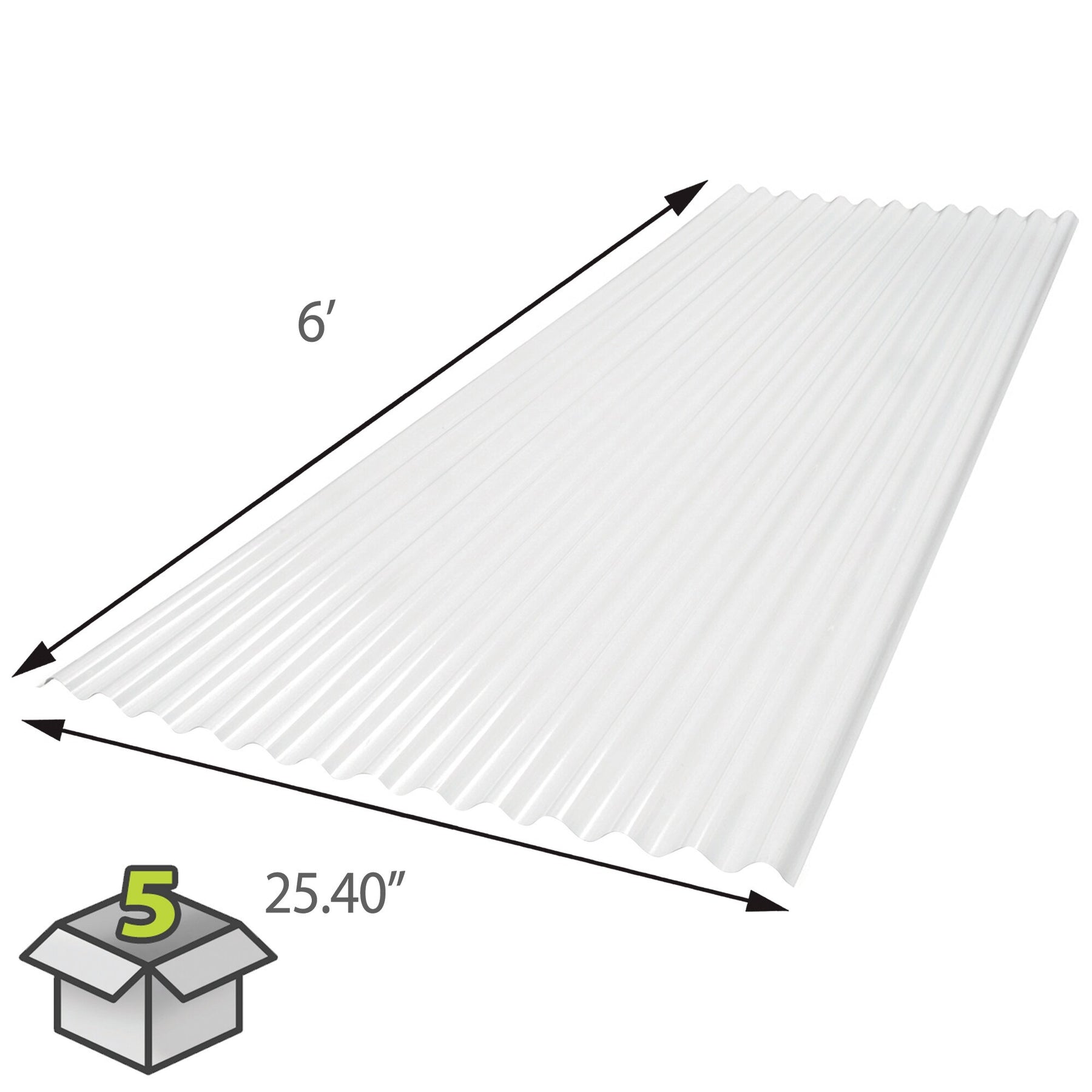 SUNSKY 2-ft x 6-ft Corrugated White Polycarbonate Roof Panel, 5-Pack