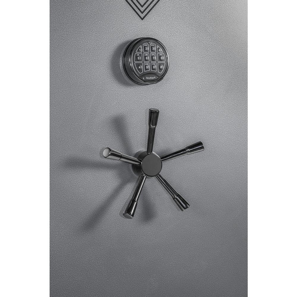 The Colonel 35 Gun and Home Safe provides deluxe security features for securing all your valuables, while you protect those who matter most to you. The Colonel 35 has 2 gun racks with an adjustable interior that includes four shelves, which can either be adjusted or removed for additional storage. It will hold up to 35 guns and is constructed of thick, 11-Gauge steel with a 75-minute fire rating (at 1400°F). For additional security, the Colonel 35 has 16 locking bolts that are 1.5 thick (all 16 are active). Finished in a sharp, charcoal gray and matching light gray interior, the color combination is quite striking. The Colonel 35 is a great size, and safe, for a moderate firearm collector, yearly hunter or medium sized family. Backed by SURELOCK Security's Lifetime Replacement Program - the Colonel Series Gun and Home Safe provides superior protection at an affordable price. Safely secure your belongings and valuables knowing that SURELOCK has your back for life.