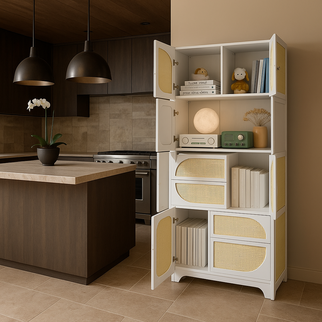 This Tatayosi cabinet transforms any room with its blend of modern design and natural warmth. The rattan doors add texture and charm, while the white finish ensures a clean, sophisticated look. Perfect for organizing essentials, it complements both contemporary and classic interiors. A must-have for creating a serene and stylish environment.
