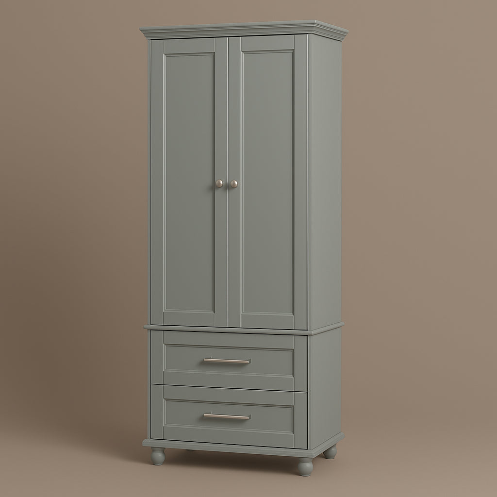 Tatayosi Wooden Tall Storage Cabinet with 2 Drawers, Grey