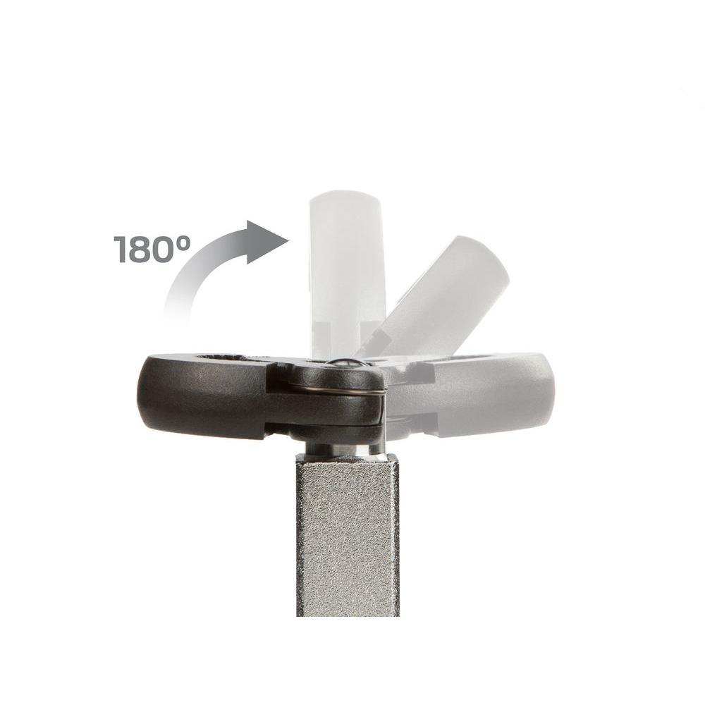 • 180° pivoting head holds its position at any angle to access hard-to-reach nuts