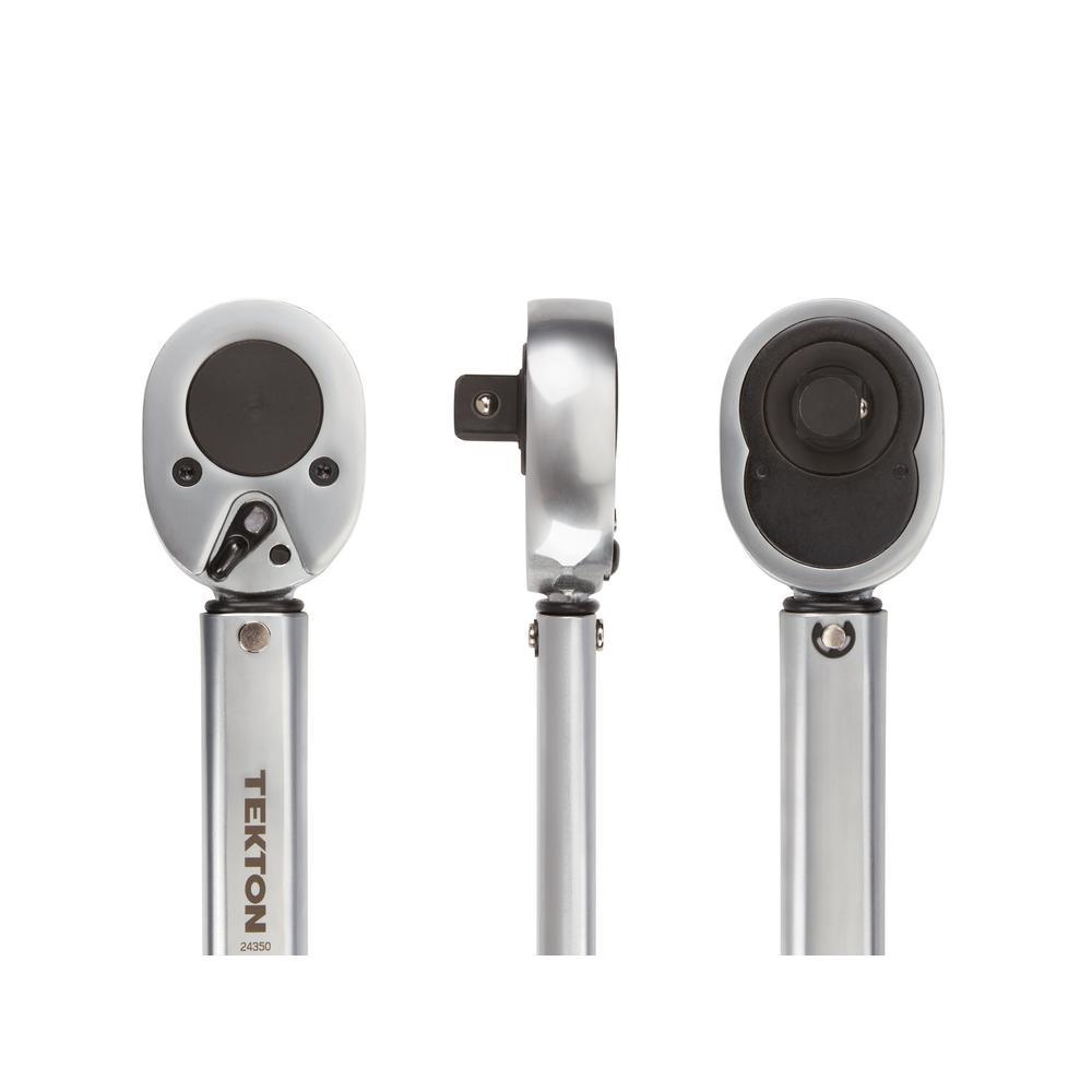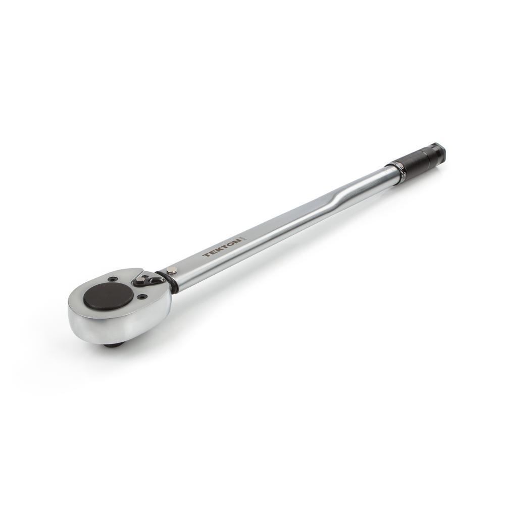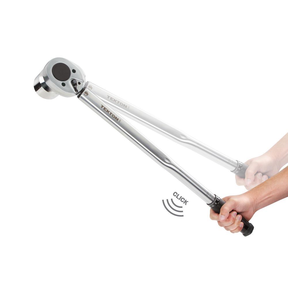 Calibrated to an accuracy of +/- 4%, the TEKTON 3/4 in. Drive Click Torque Wrench lets you work with confidence, eliminating guessing and the common tendency to overtighten fasteners. Correctly tightening fasteners to vehicle or equipment torque specifications ensures parts are properly secured without being damaged. Simple and easy to use, this wrench has a reversible ratcheting head that drives fasteners in both directions and measures torque in the clockwise direction. To measure torque, set the desired value on the handle scale (foot pounds or Newton meters) and begin tightening the fastener. When the preset torque value is reached, a reliable mechanical operation inside the handle produces a click you can hear and feel, alerting you to stop applying force. Built for consistent performance and years of dependable service, the mechanical design does not need batteries and the all-steel construction has no plastic parts to break or wear out. IMPORTANT: This wrench is shipped pre-calibrated and ready to use. To help maintain calibration, store at its ARB265Wt setting of 50 ft./lb. (67.8 Nm) when not in use. Be sure to read and understand the operator's manual, including all safety information, before first use.
