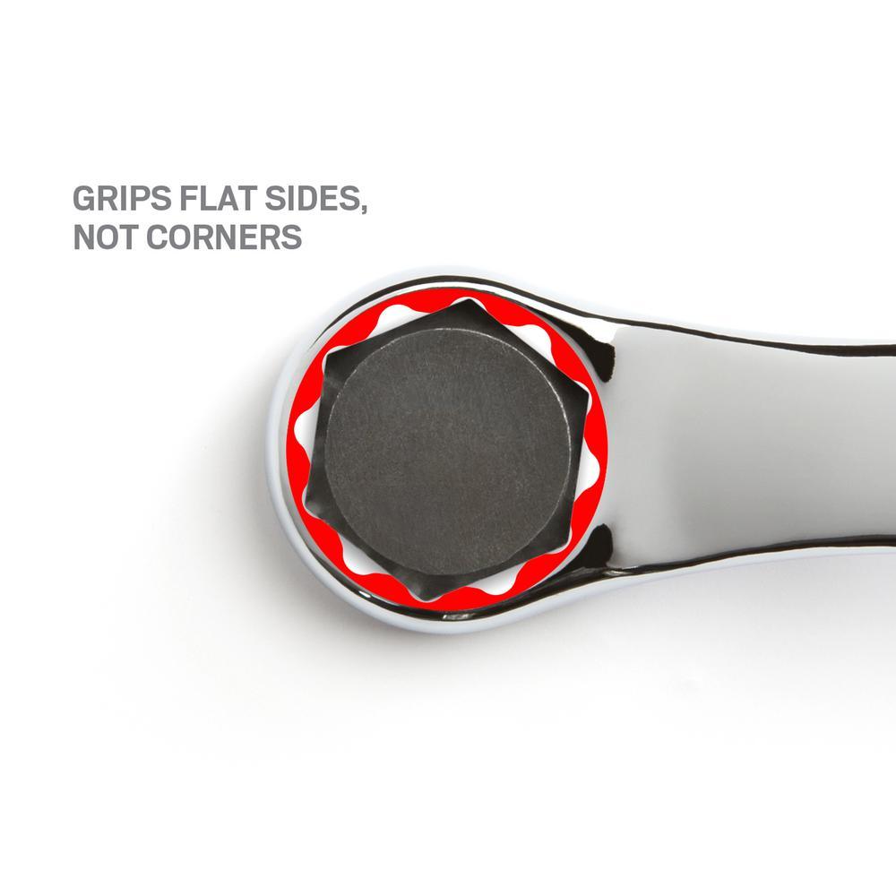 • Box end geometry is designed to grip flat sides of fastener heads, not corners, to prevent round-off