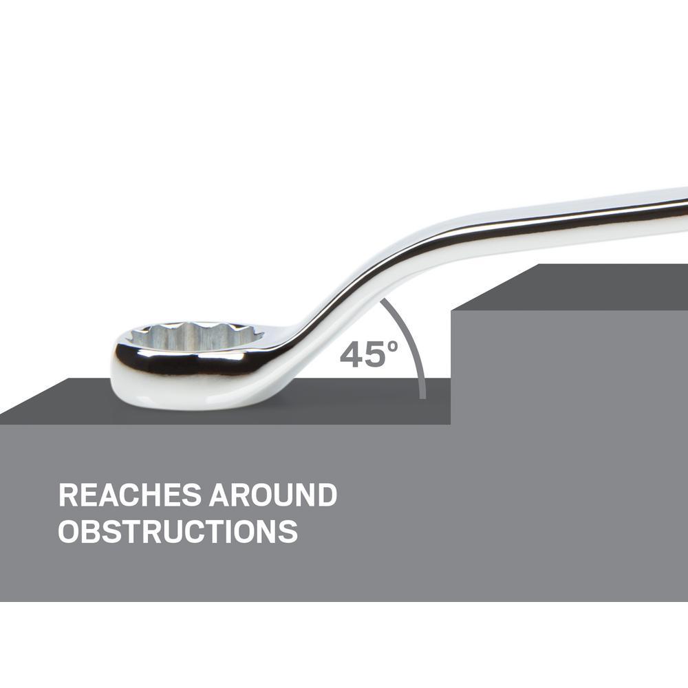 Generous Offset: Each end is offset 45°, creating plenty of clearance for your fingers and allowing an easy reach over and around obstructions.12-Point Openings: Doubling the access angles of 6-point wrenches, these 12-point openings make it easier to work in tight spaces.Non-Rounding Geometry: To prevent damaging round-off, the geometry of each opening contacts and applies force to the flat sides of fastener heads rather than the corners.Organized Storage: The versatile Store-and-Go Keeper has a folding handle that saves space in your drawer or tool chest. When you're on the move, the nonslip grippers lock wrenches securely in place.