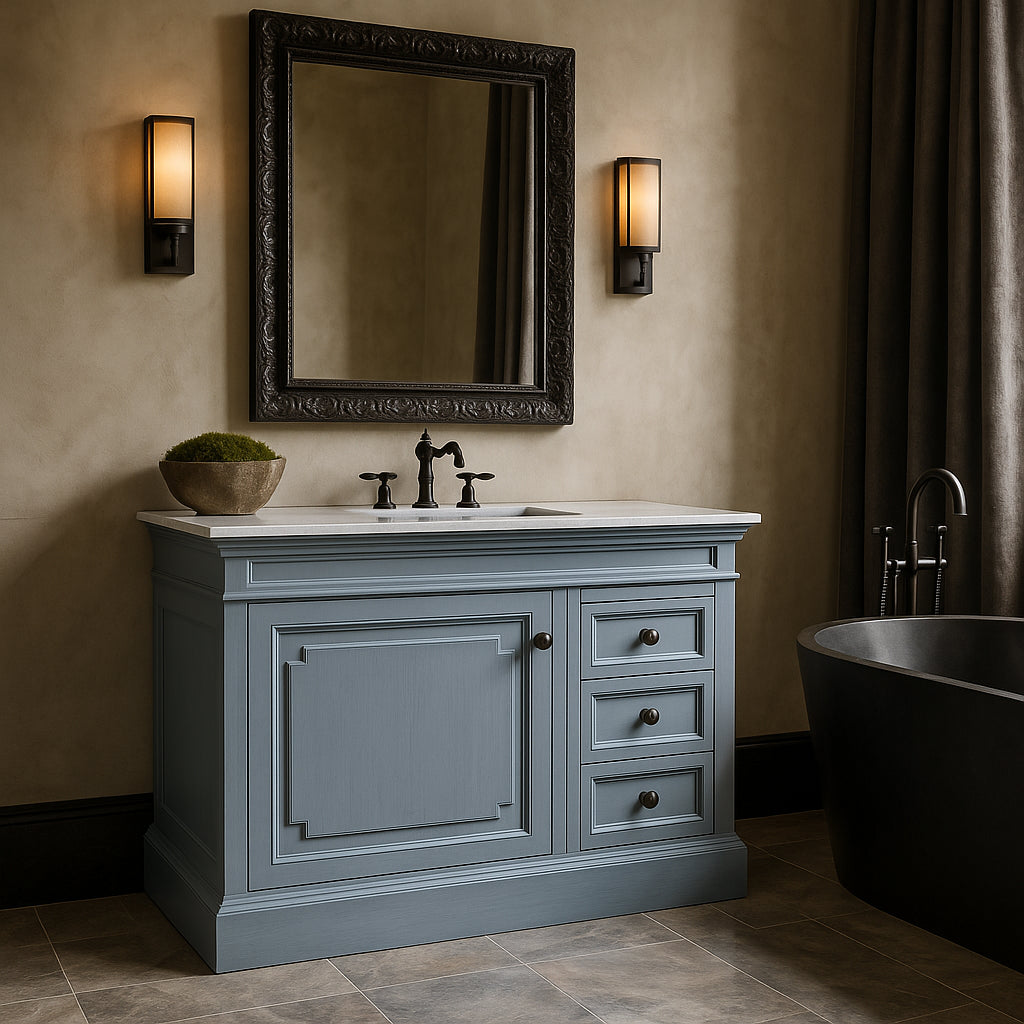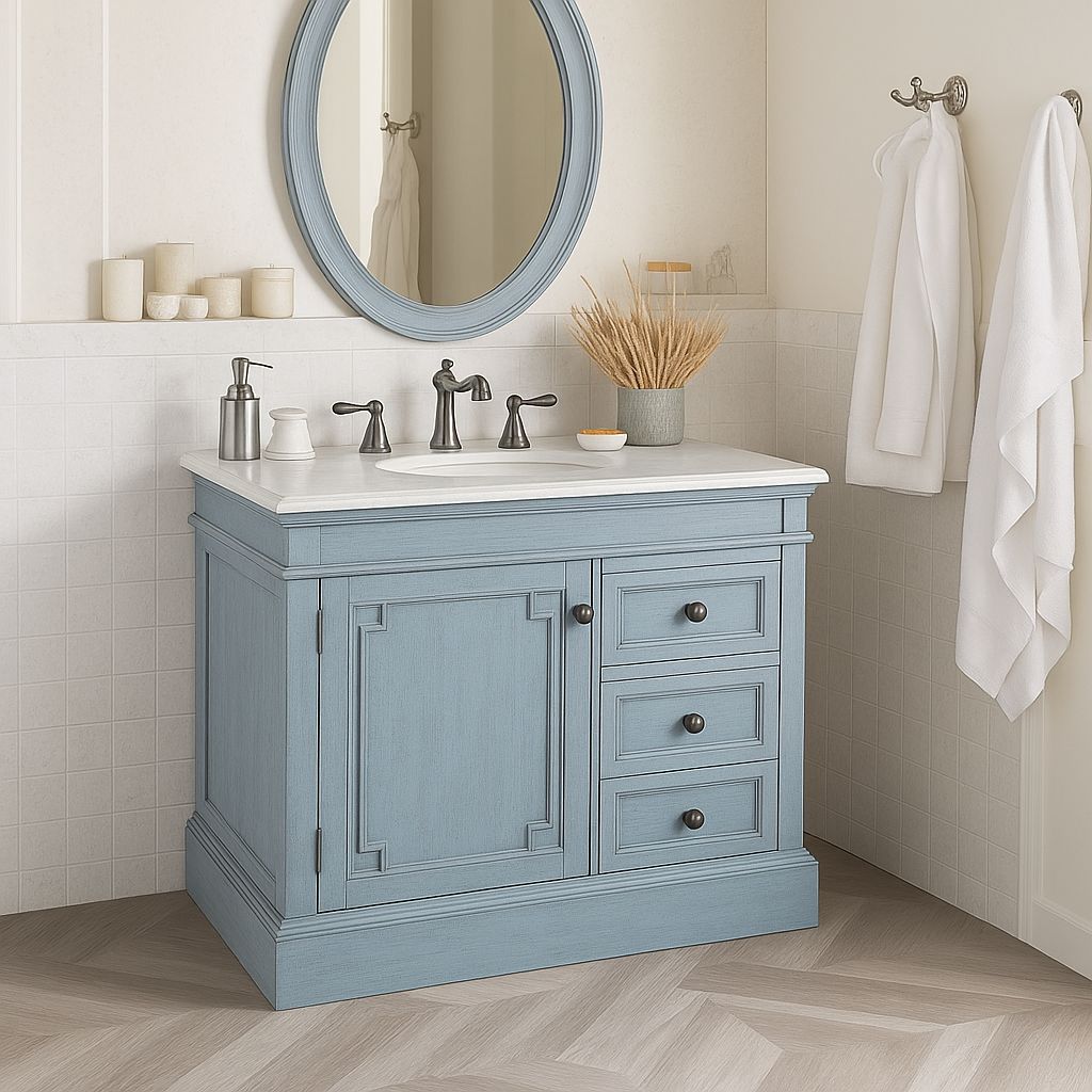 The Cailla 48-Inch Bathroom Vanity Cabinet combines antique styling with modern functionality. Featuring a distressed finish, ample storage, and durable construction, this piece is perfect for a sophisticated bathroom remodel.