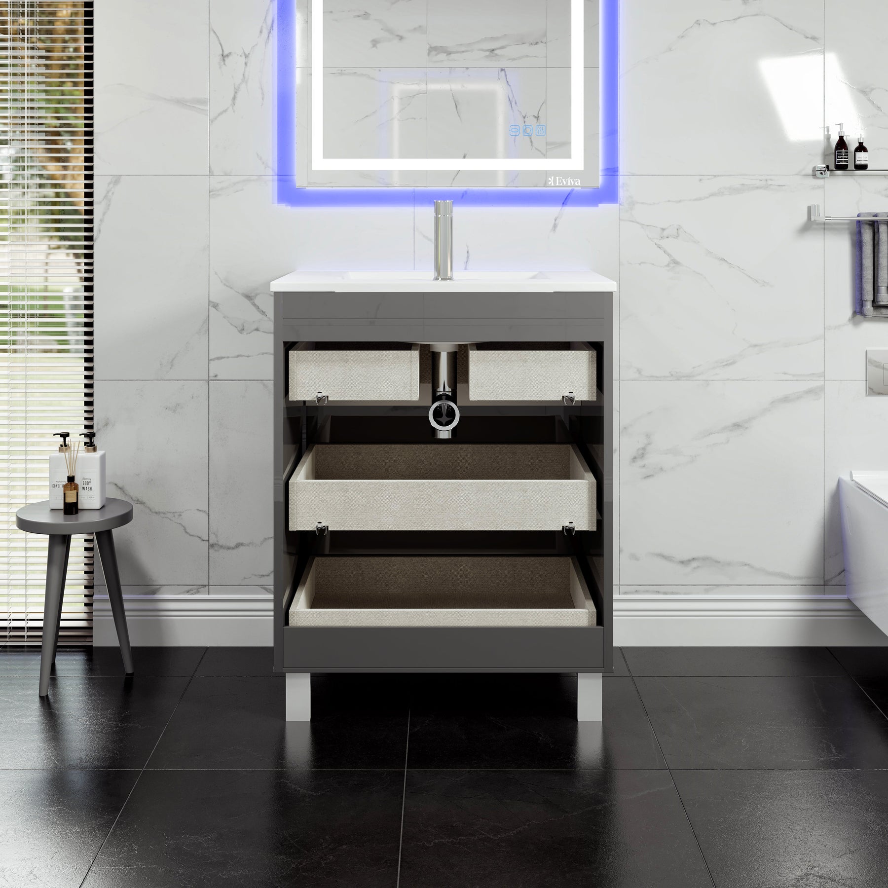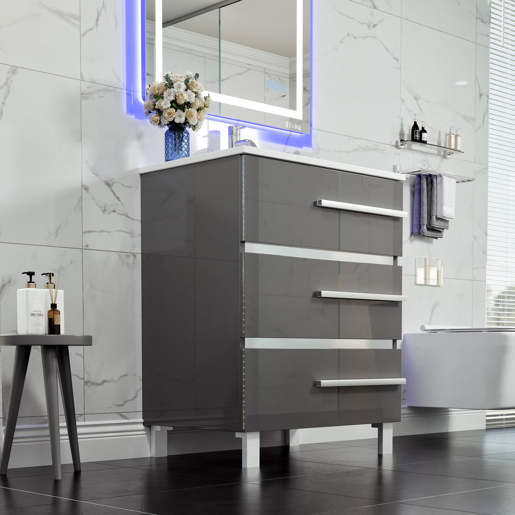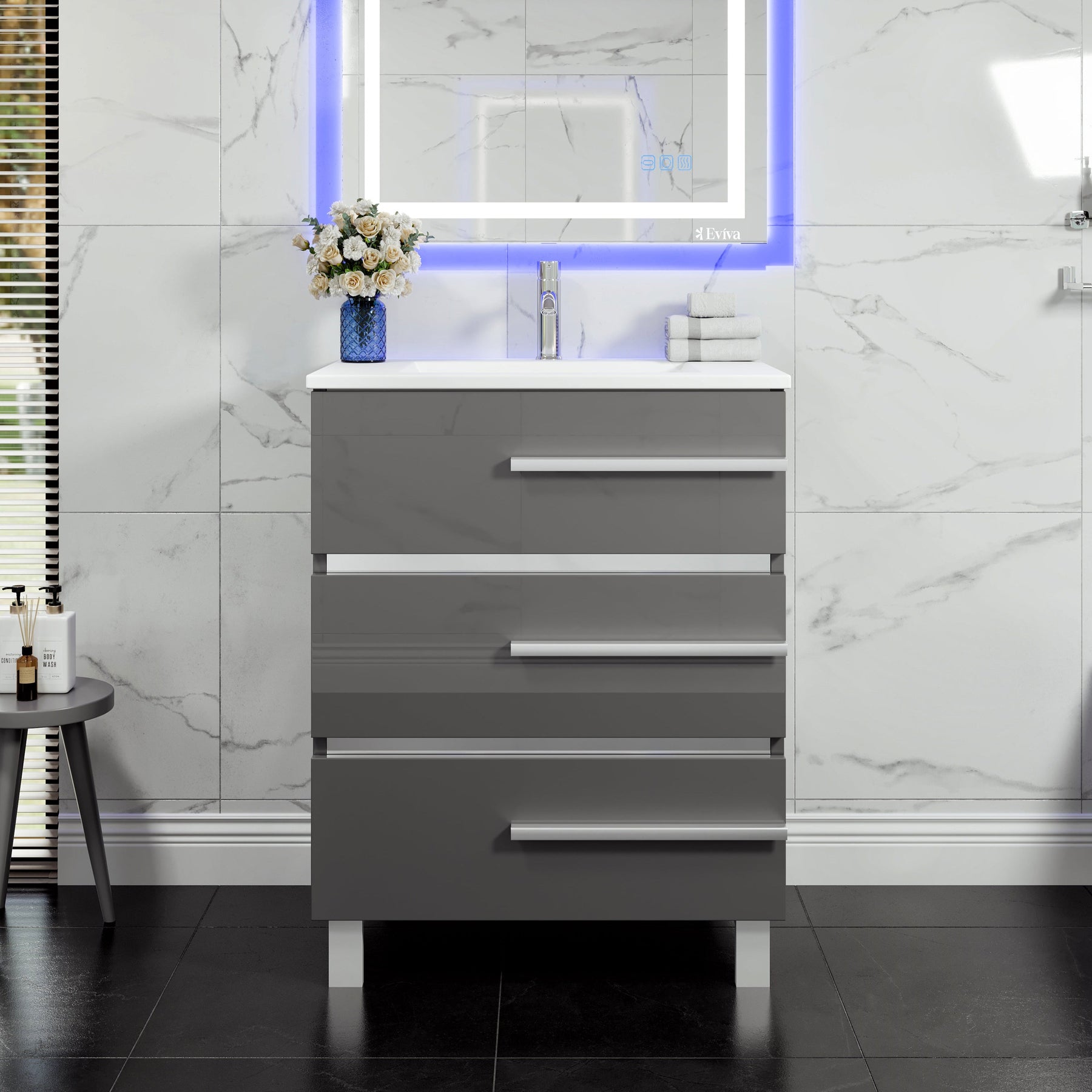 Eviva Deluxe 32" Gray Freestanding Vanity with Porcelain Top